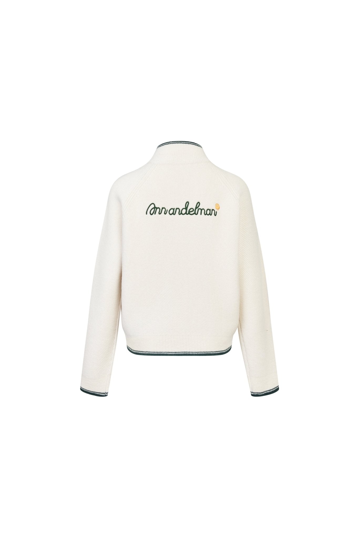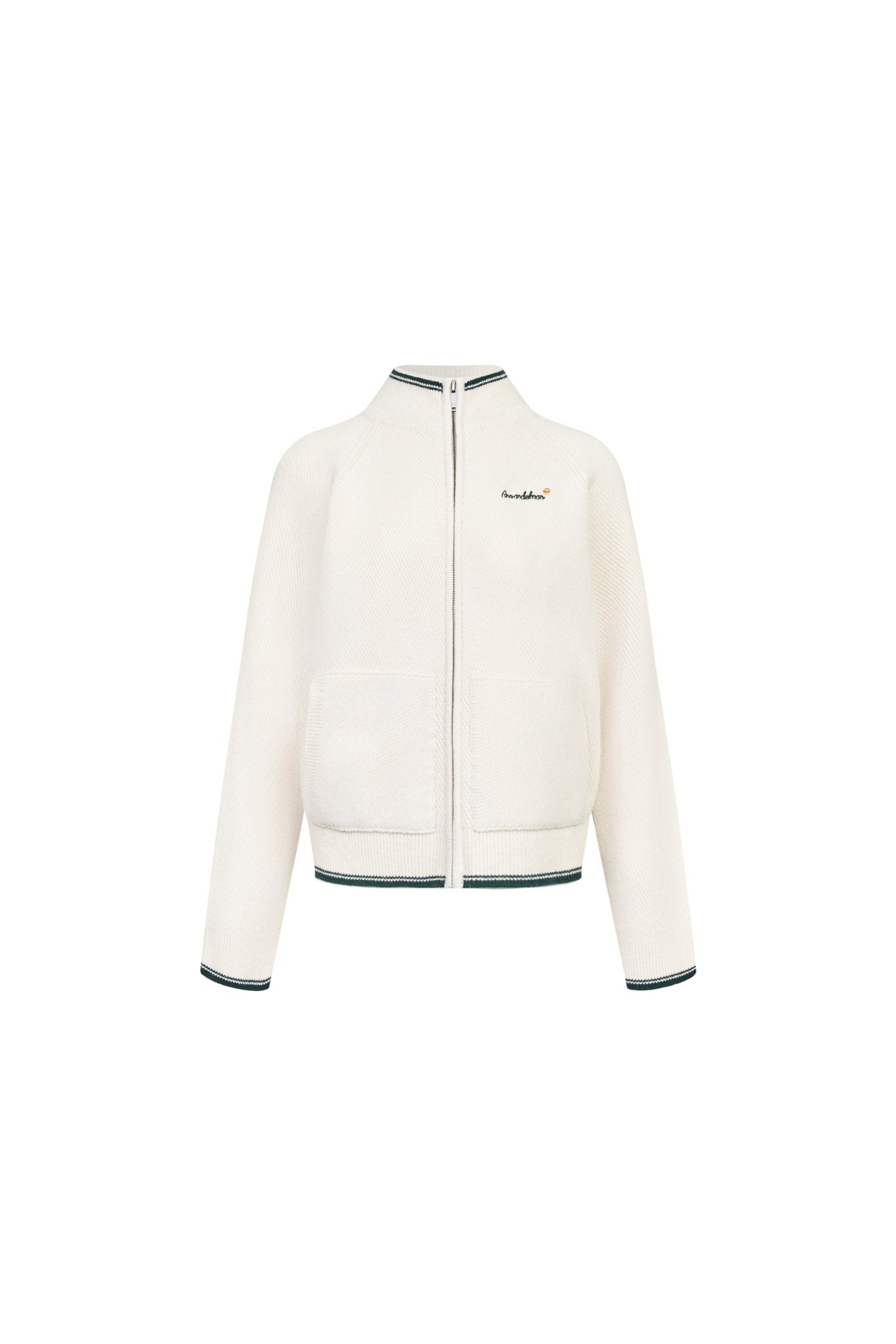 Apricot Embroidered Slim Fit Stand Collar Knit Jacket