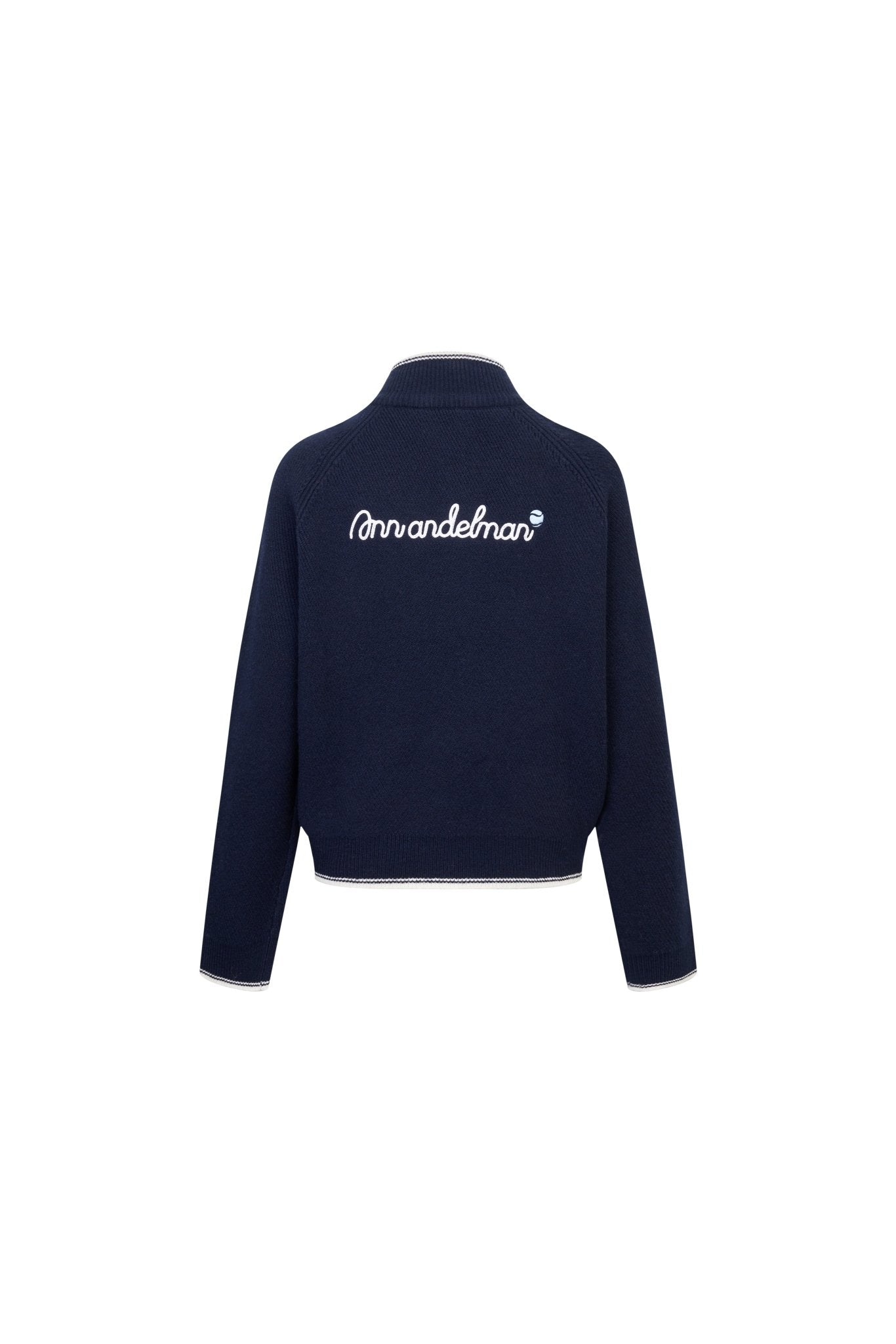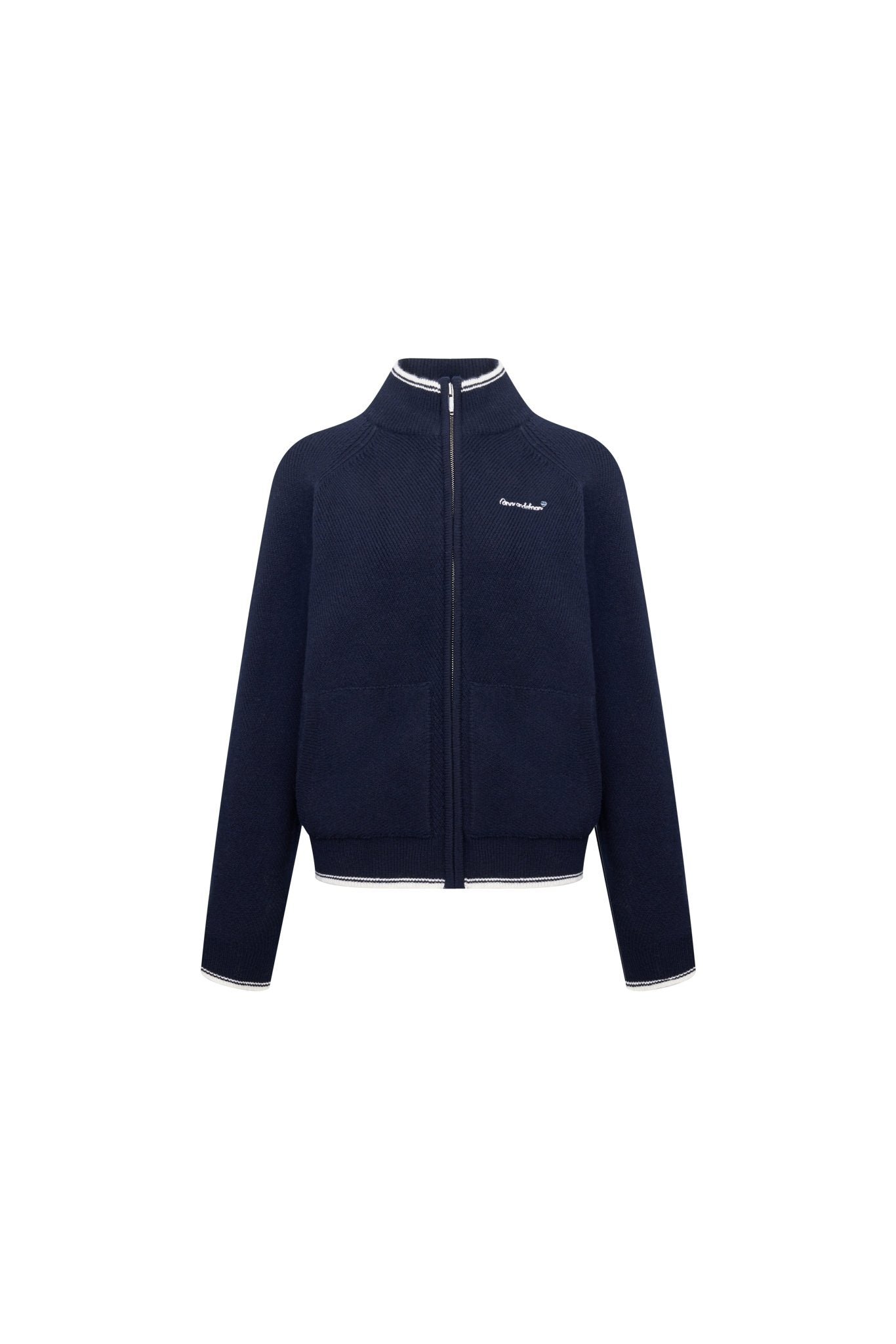 Navy blue Embroidered Slim Fit Stand Collar Knit Jacket