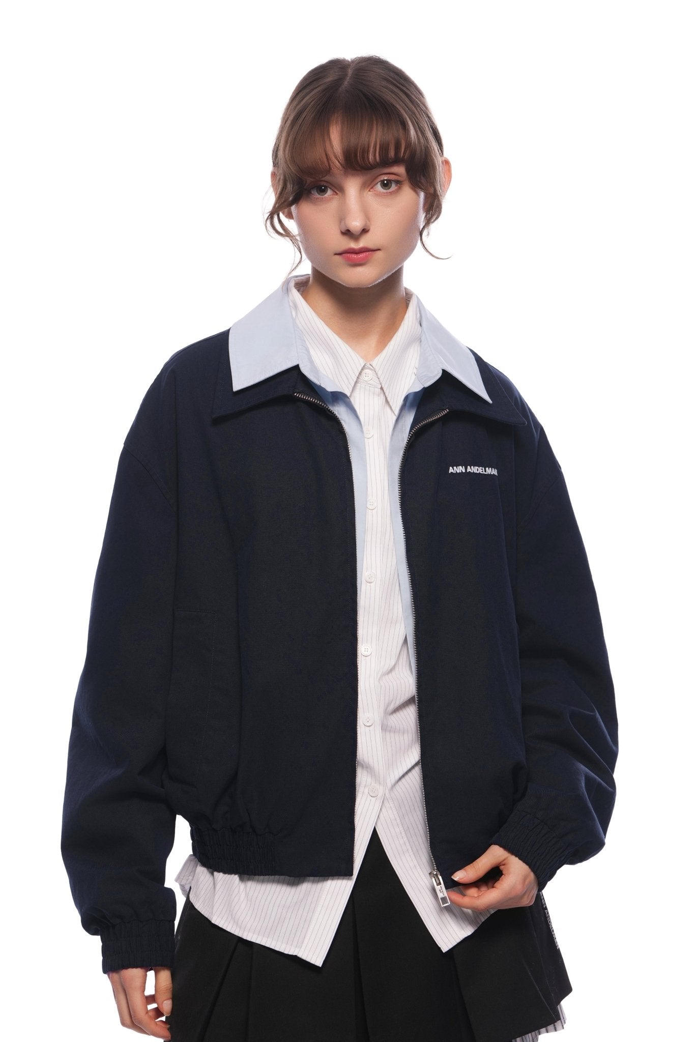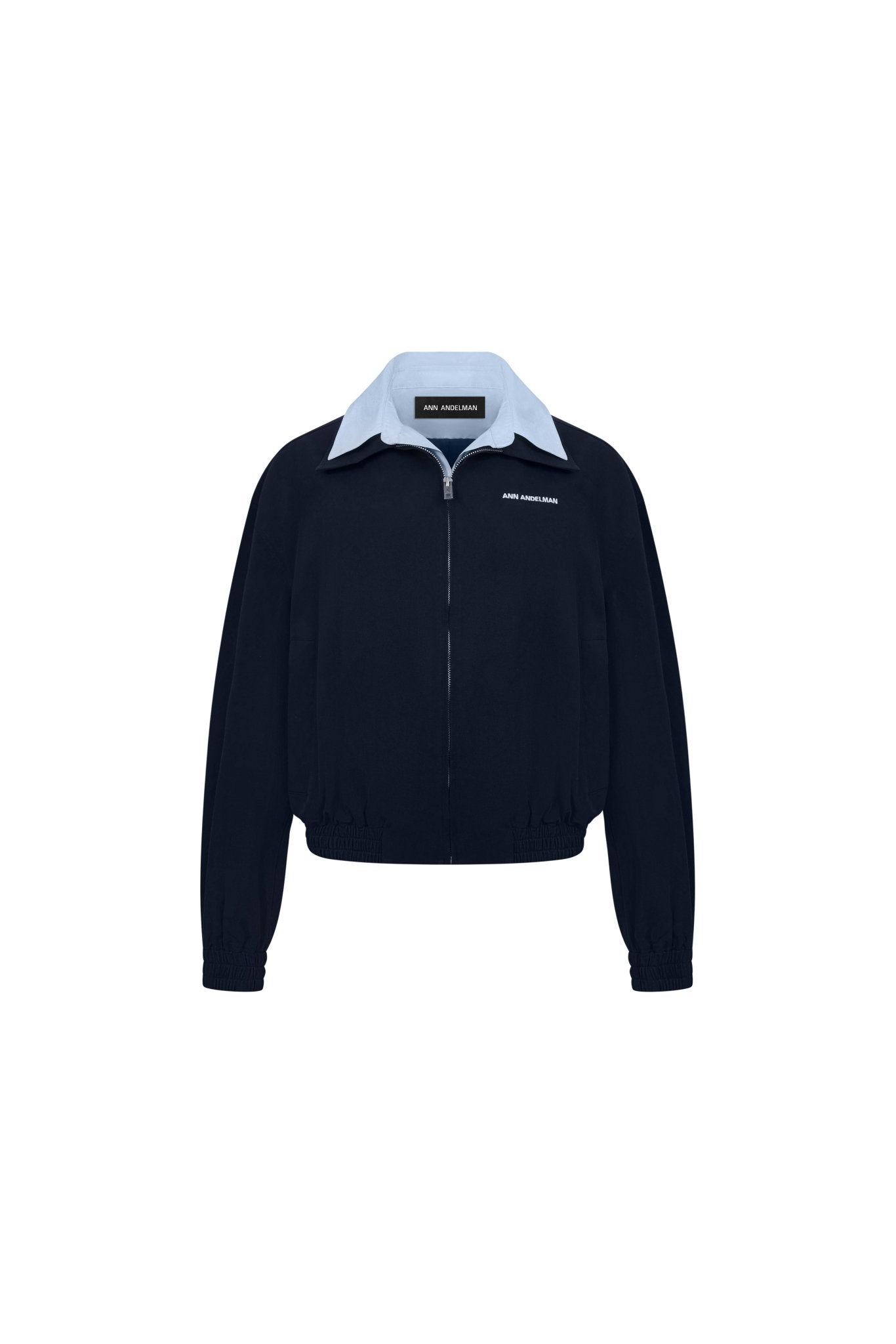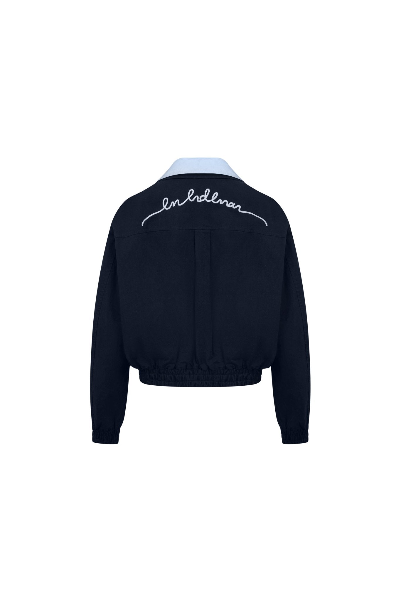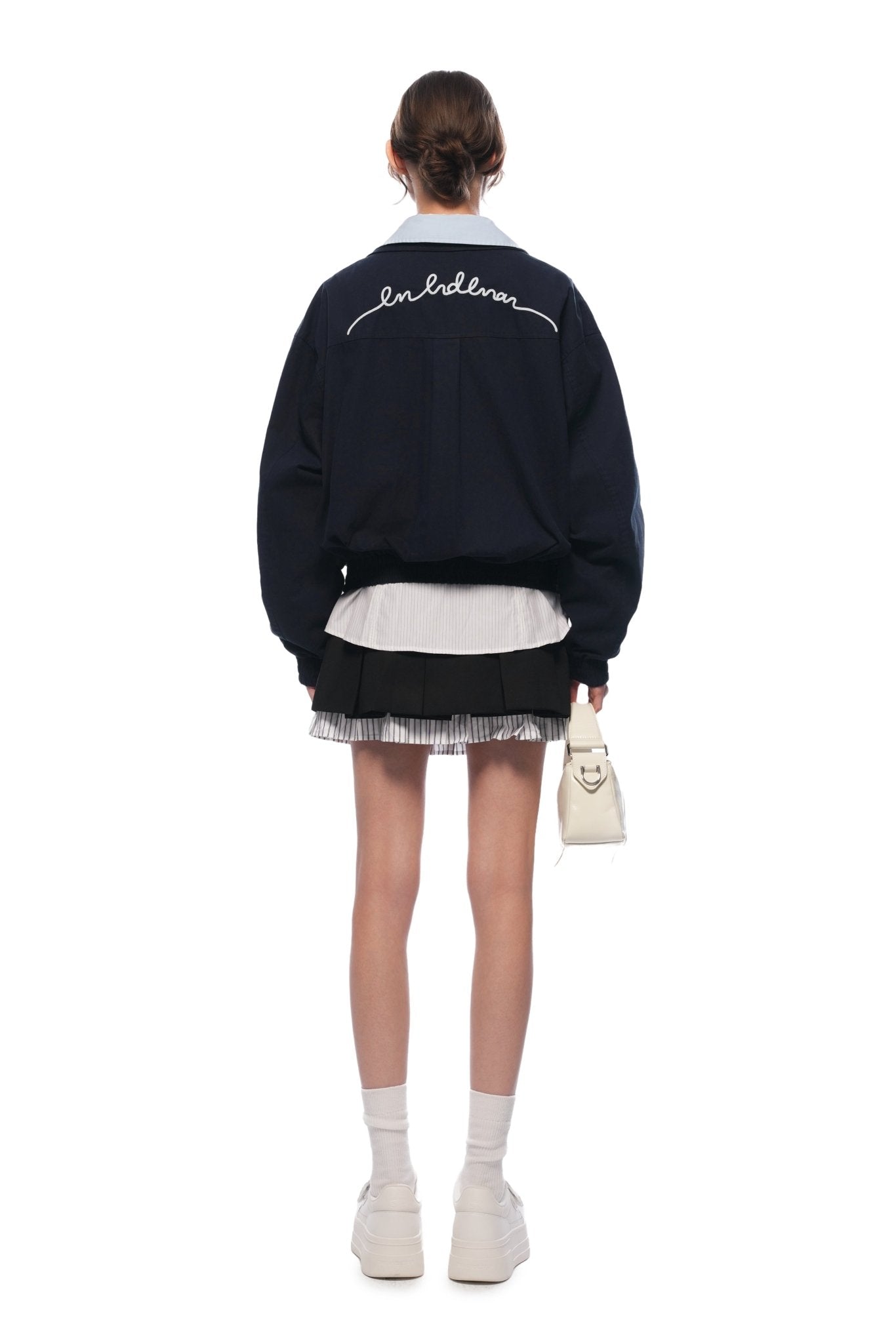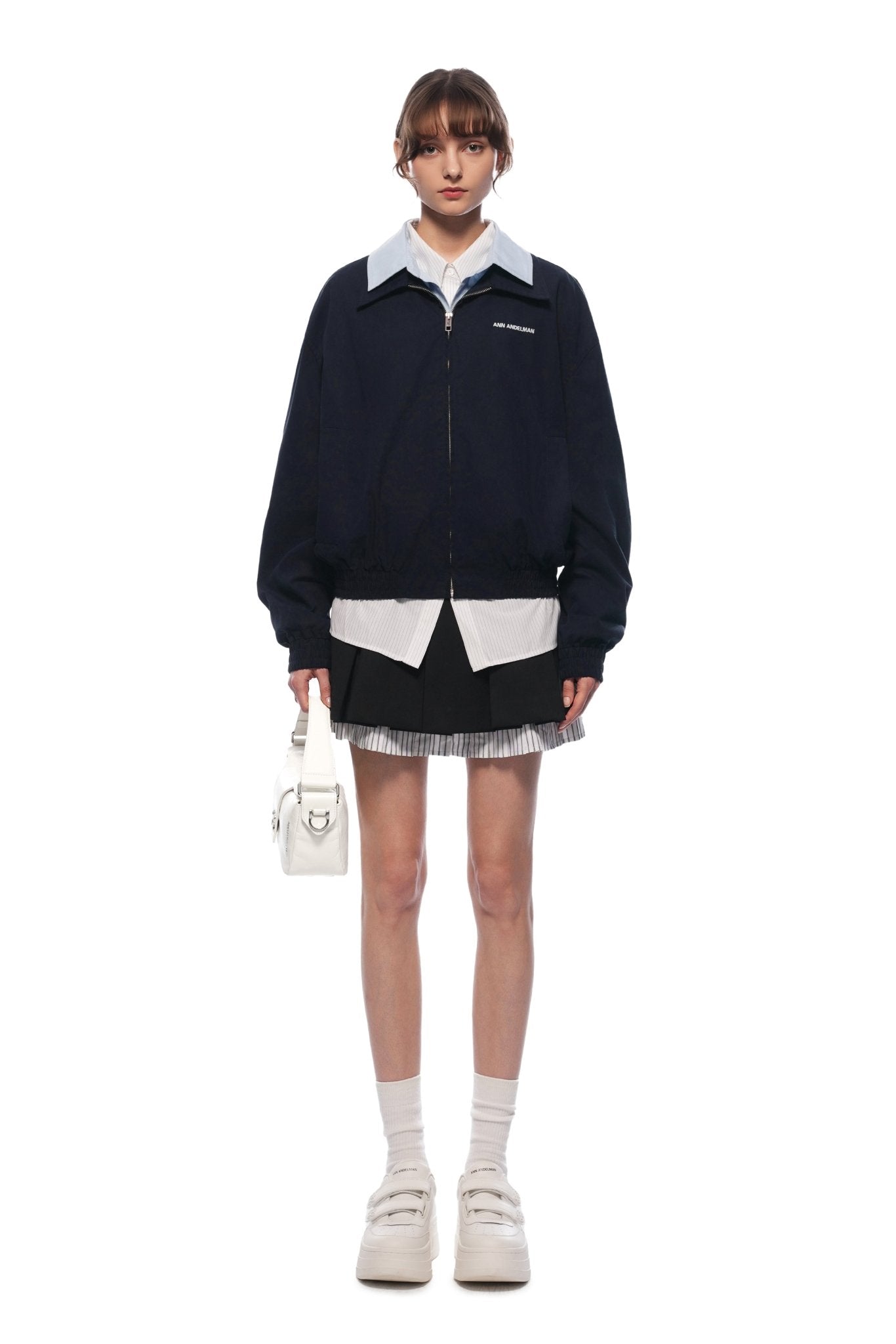 Navy Blue Faux Two-piece Patchwork Shirt Collar Jacket