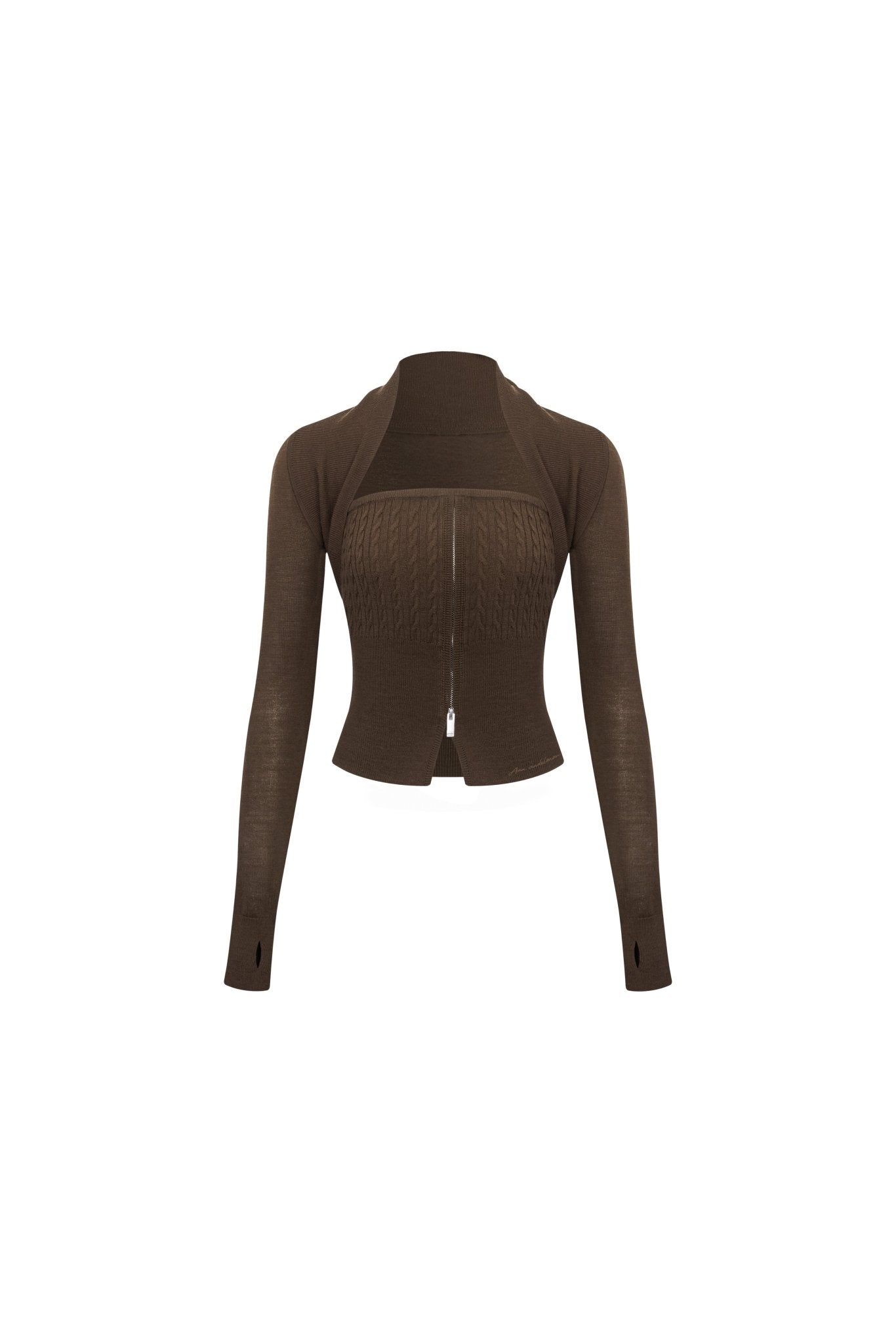 Brown Knit Strapless Vest Two-piece Set