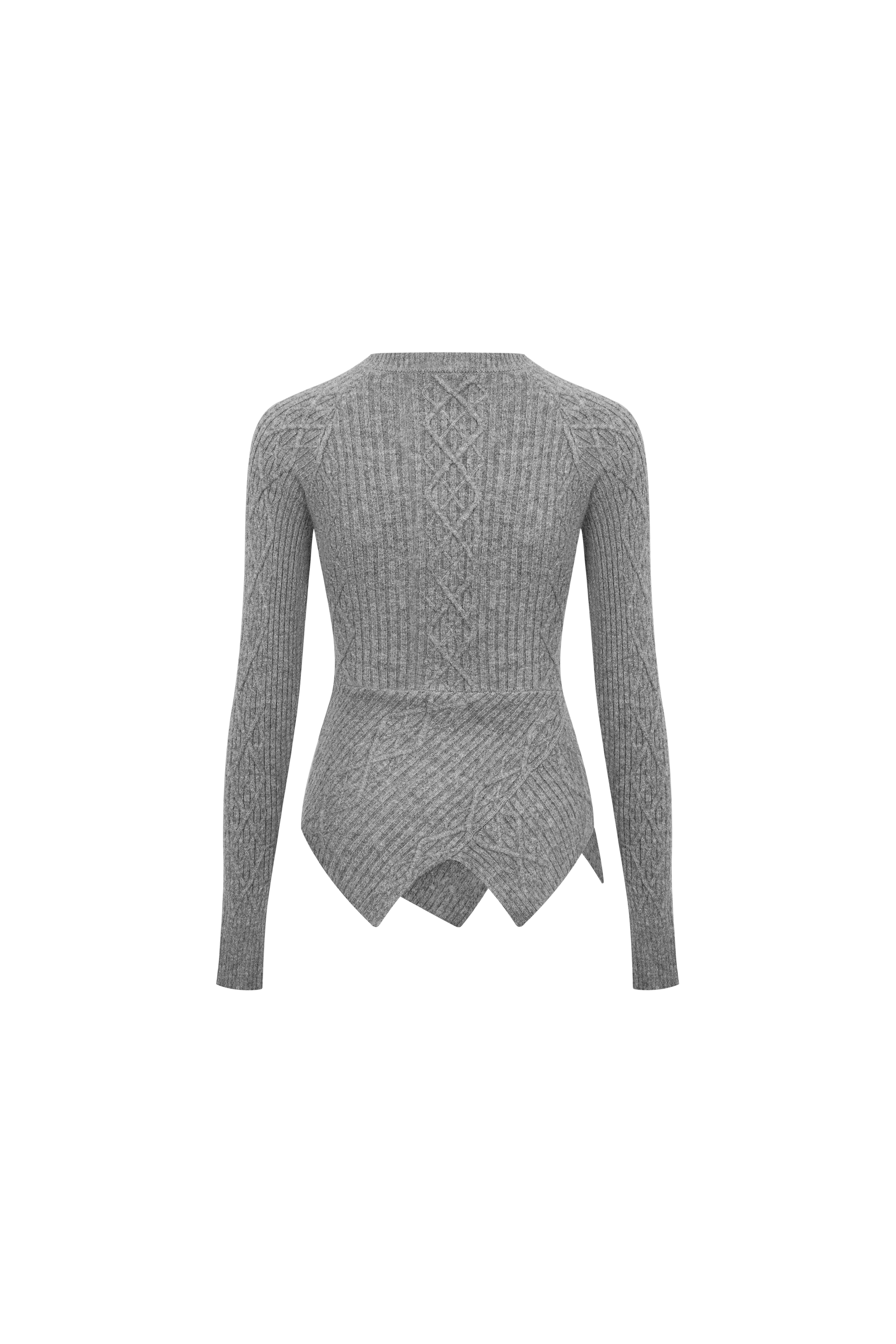 Grey Crew Neck Diamond Cable Sweater