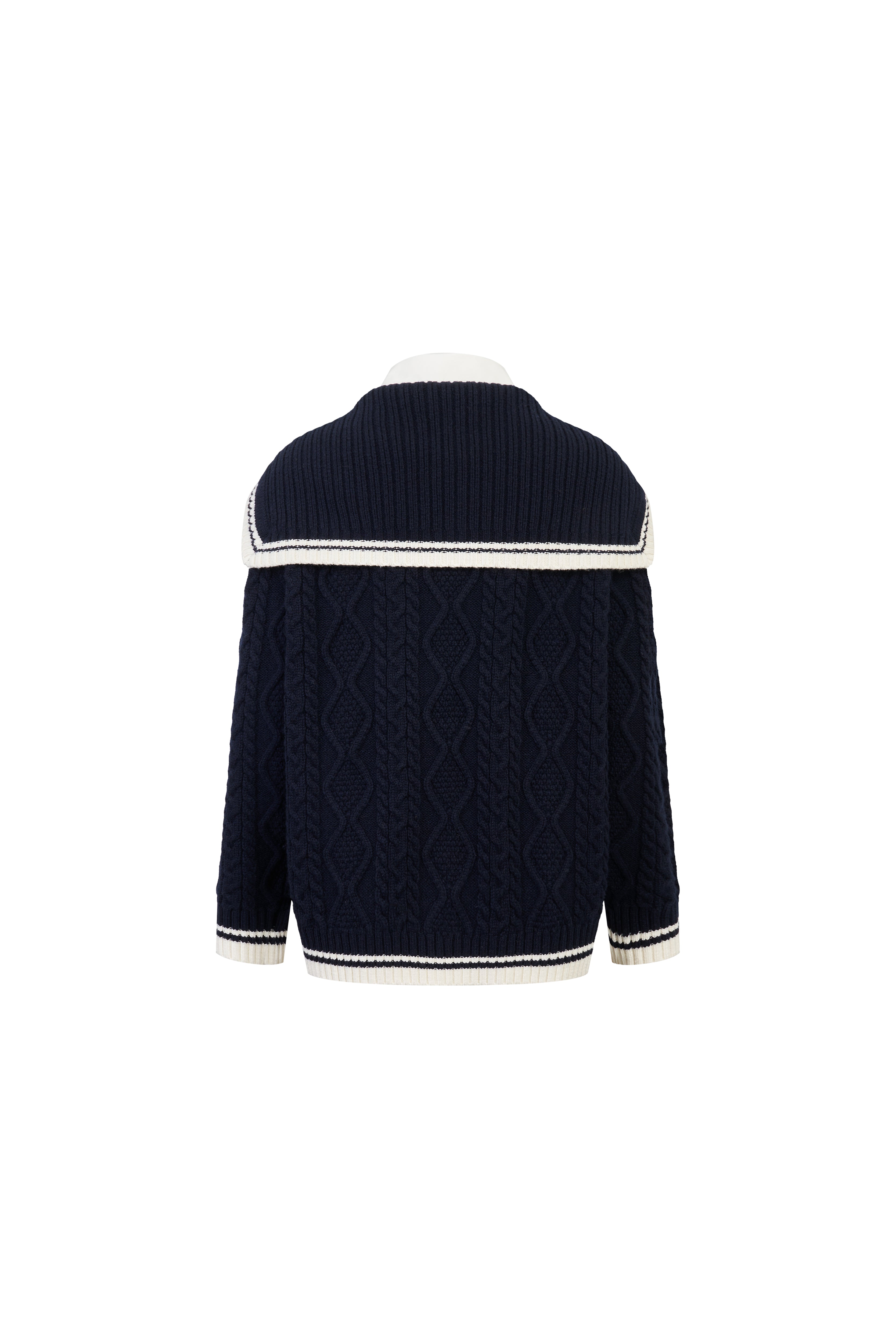 Navy Blue Faux Two-piece Sailor Collar Cable Knit Sweater