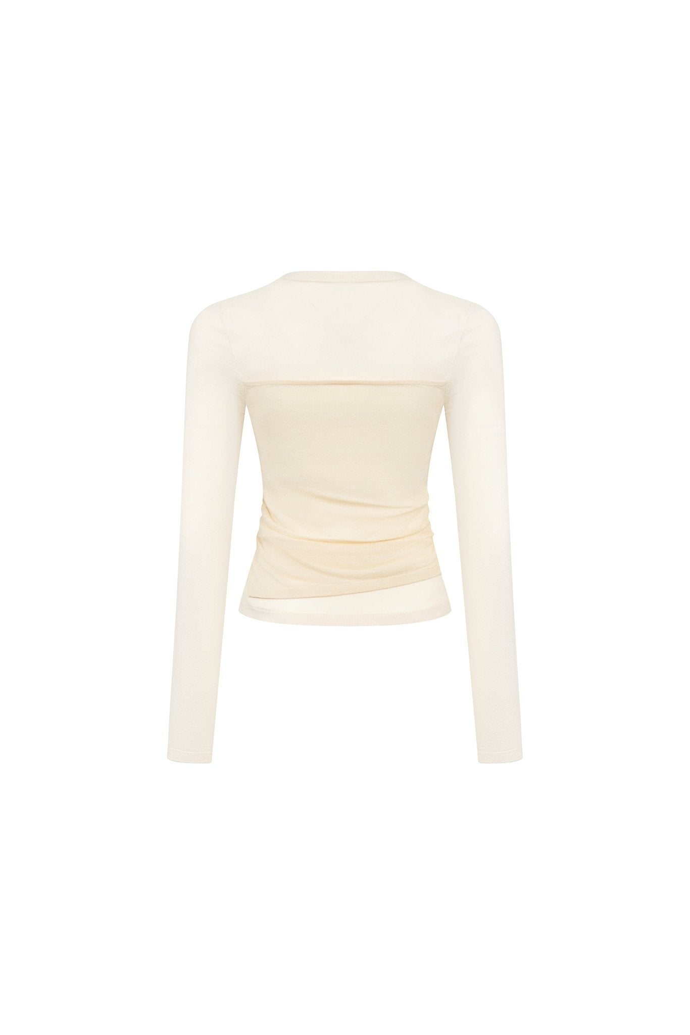Apricot Contrast Trim faux Two-piece Knit Base Layer Top