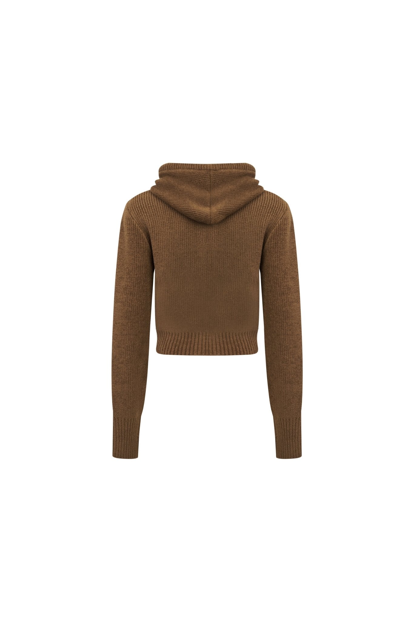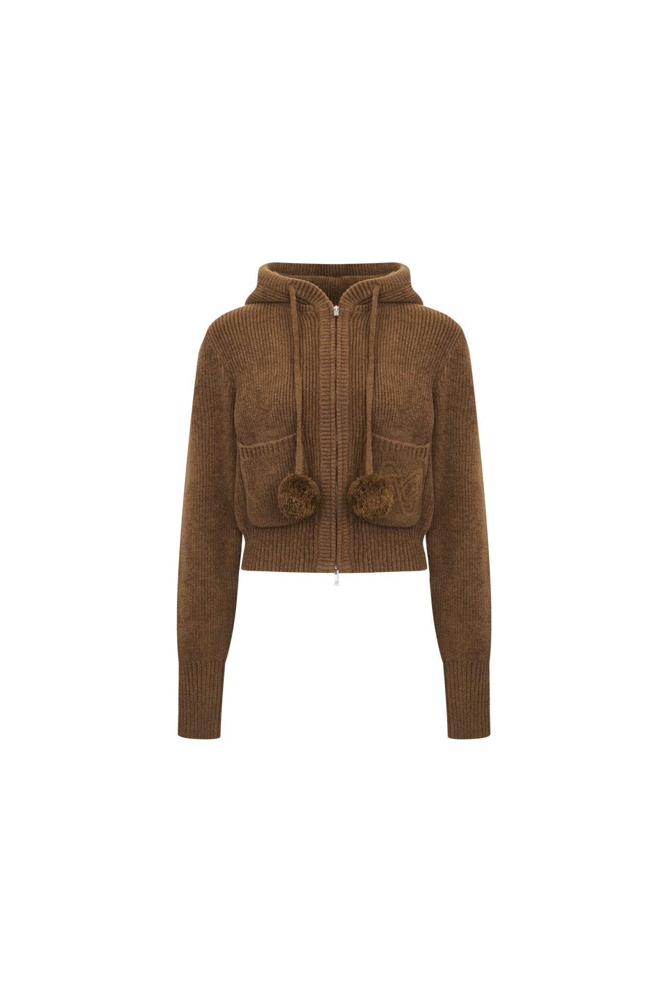 Brown Pom-pom Hooded Cardigan