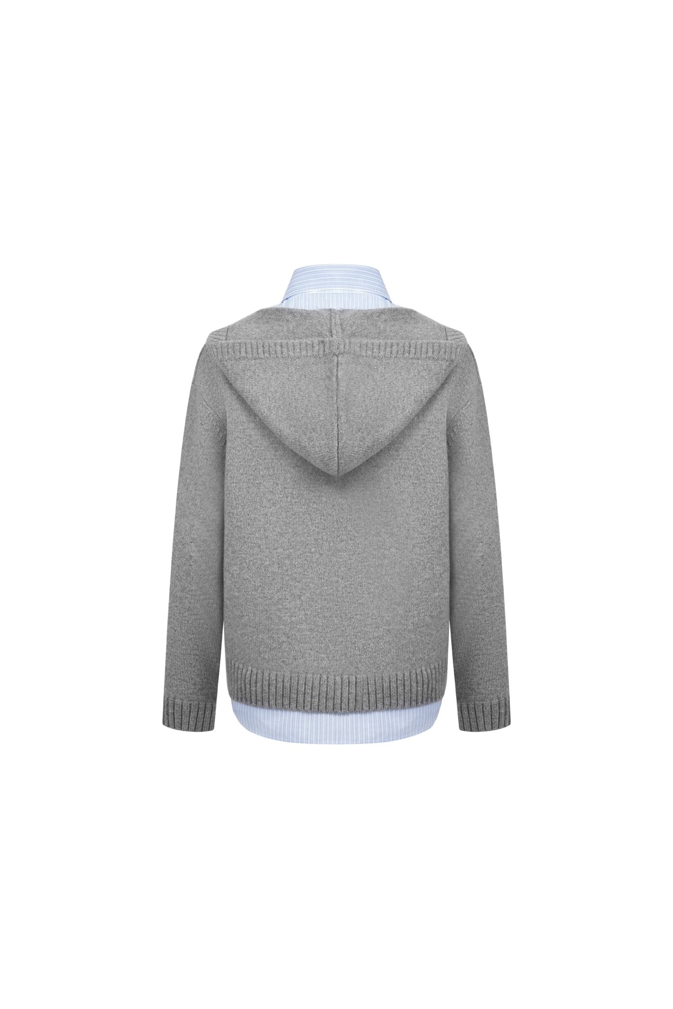 Gray Two-Piece Detachable Shirt Hooded Knit Sweatshirt