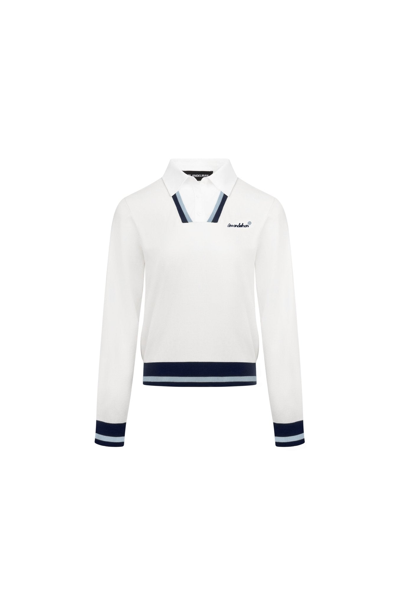 White Polo Collar Faux Two-piece Knit Sweater