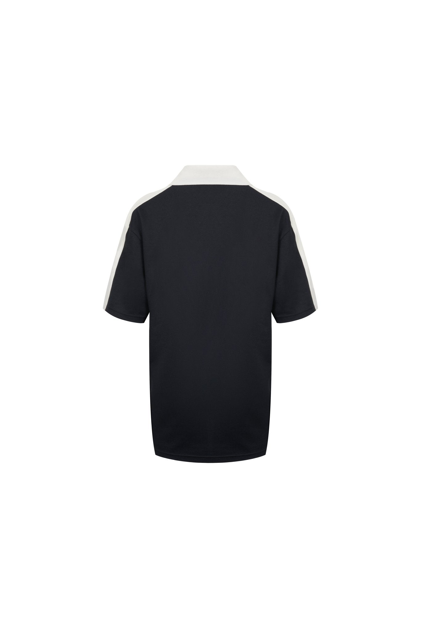 Black Round-neck Double-collar Slim-fit Base Shirt