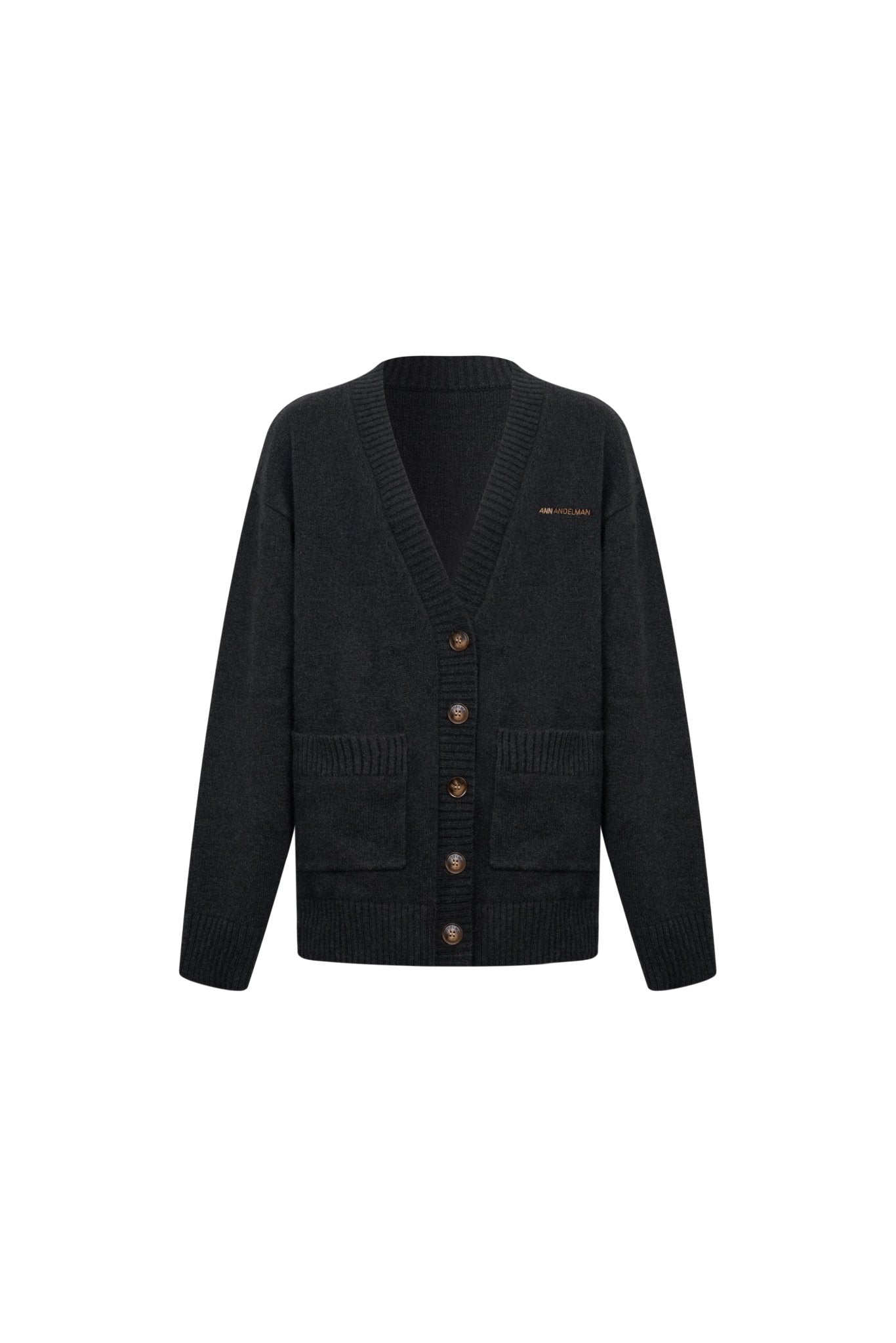 Dark Gray Dachshund Jacquard Knit Cardigan