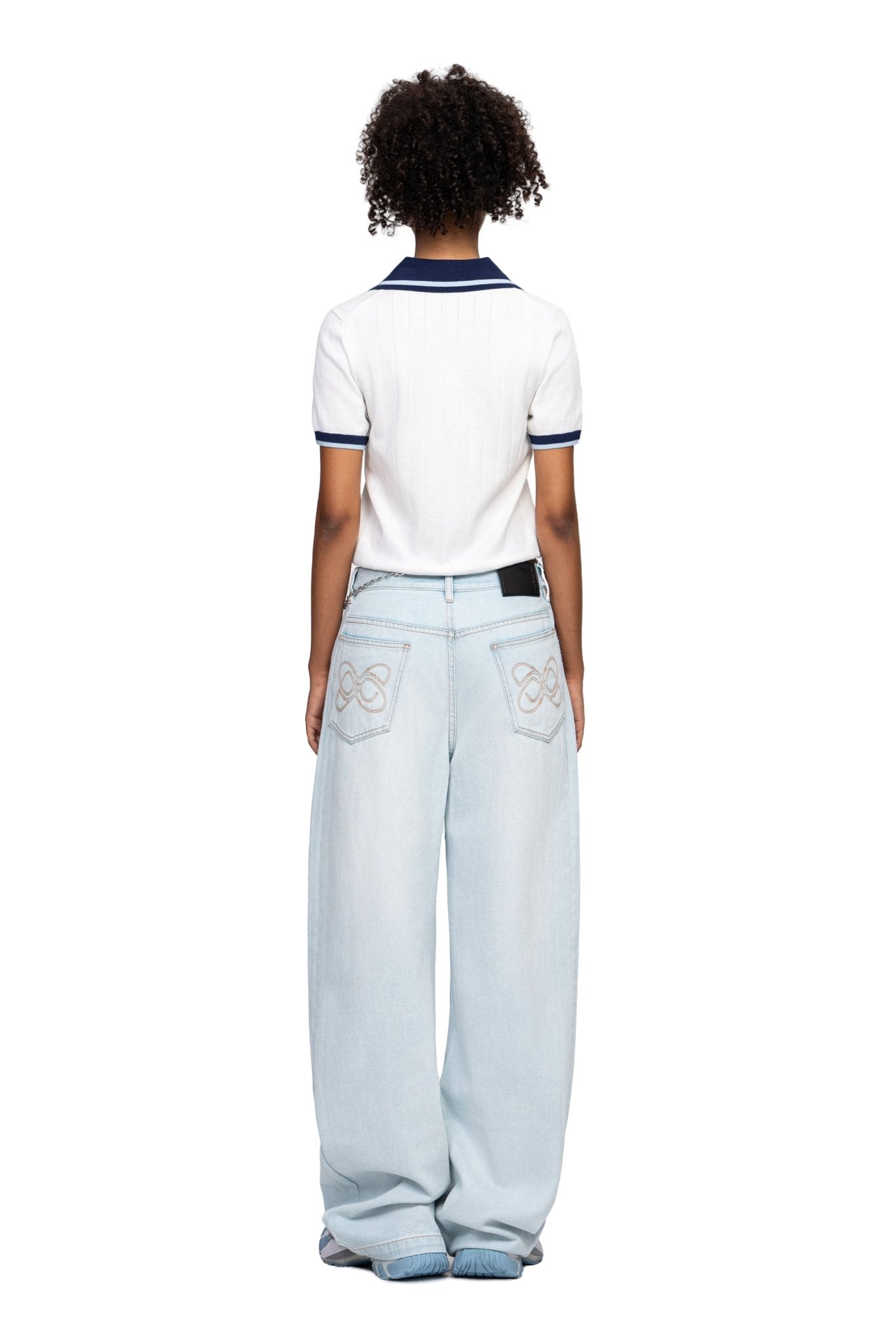 Asymmetrical Twisted Flared Jeans Blue