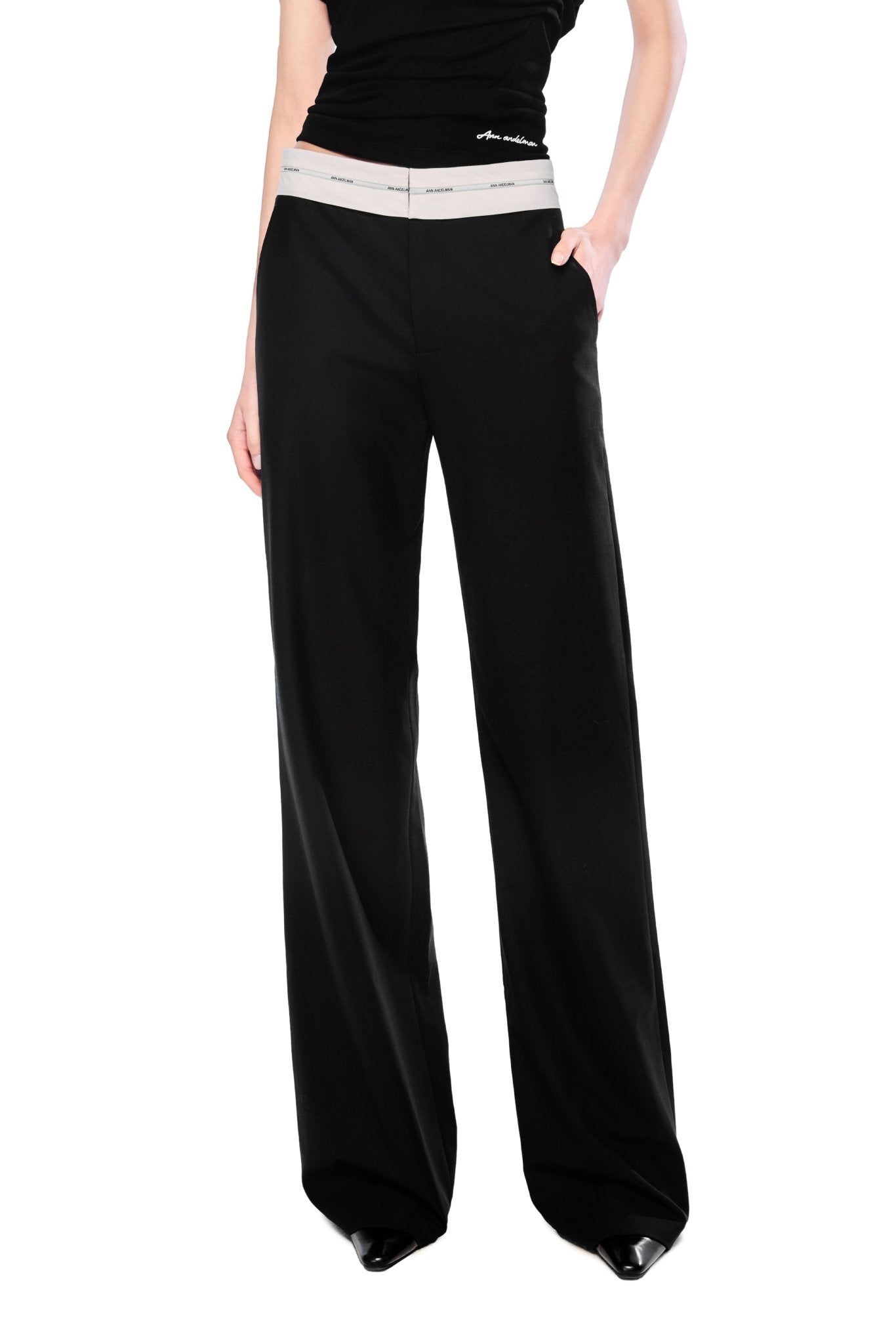 Black Wide-Leg Folded Waist Suit Pants