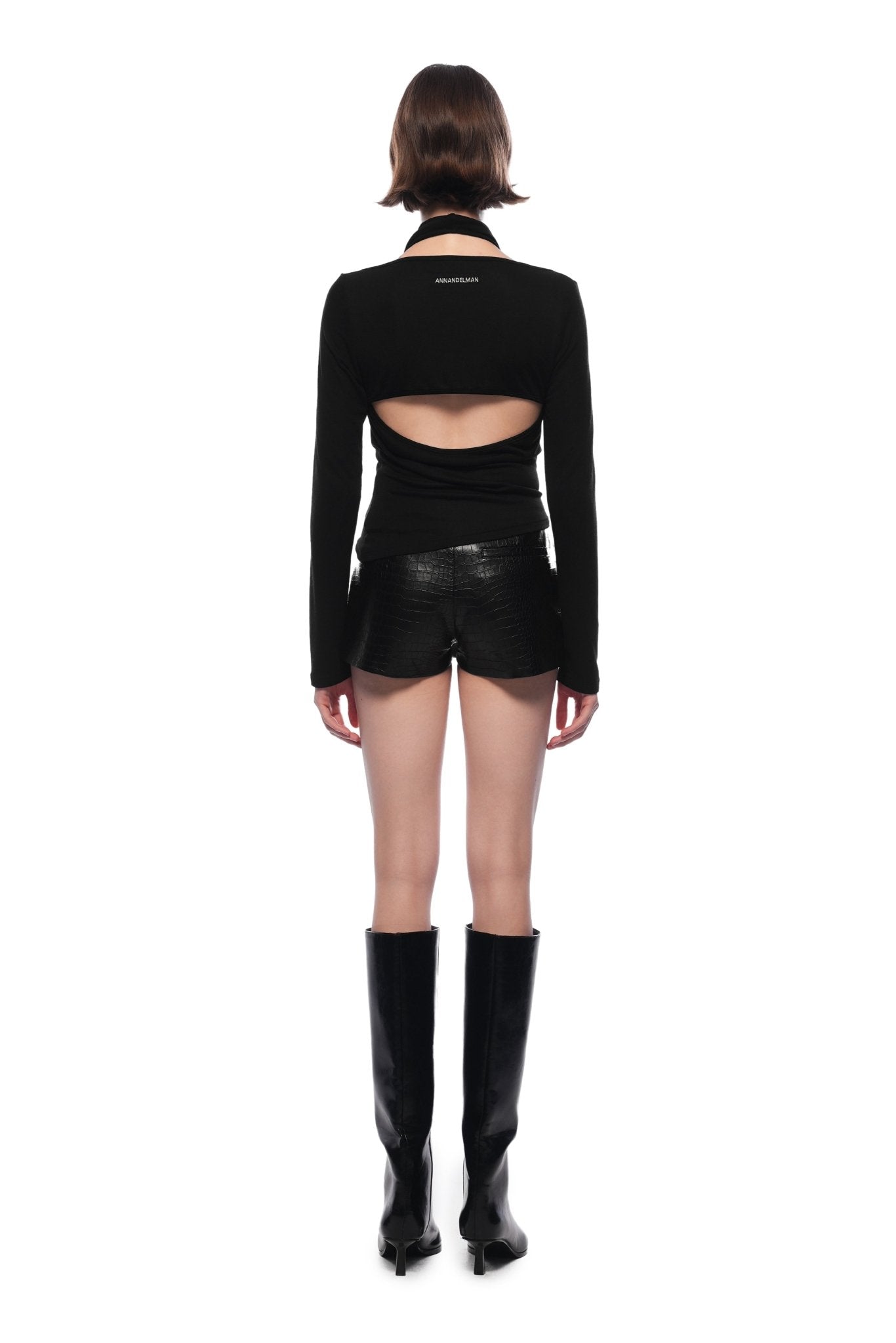 Black Round-neck Double-collar Slim-fit Base Shirt