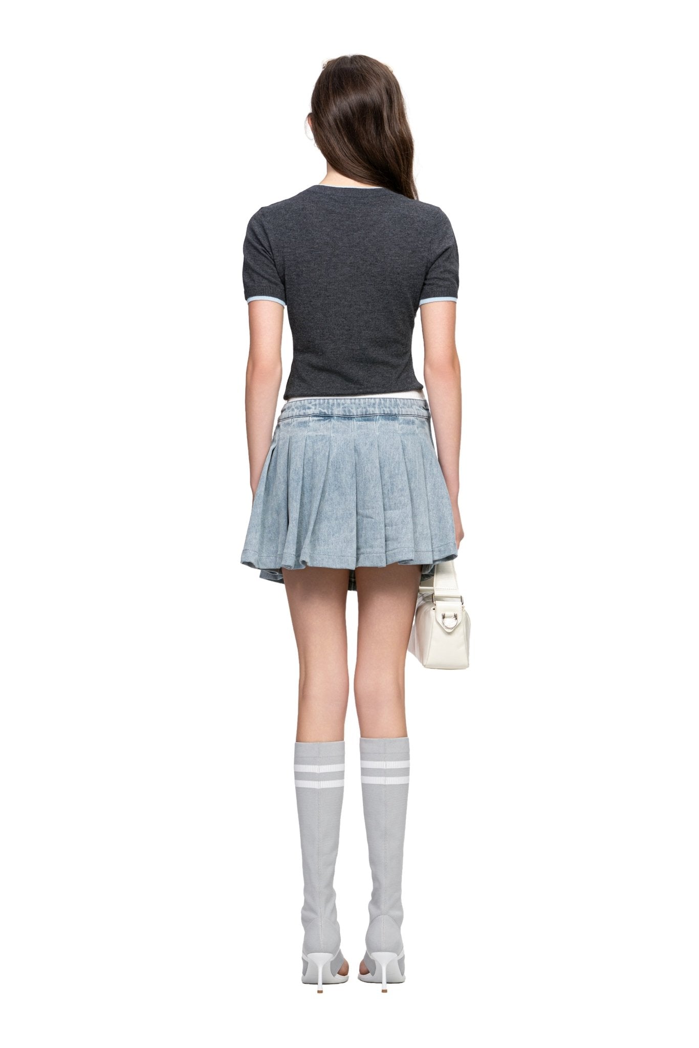 Blue Denim Pleated Skirt