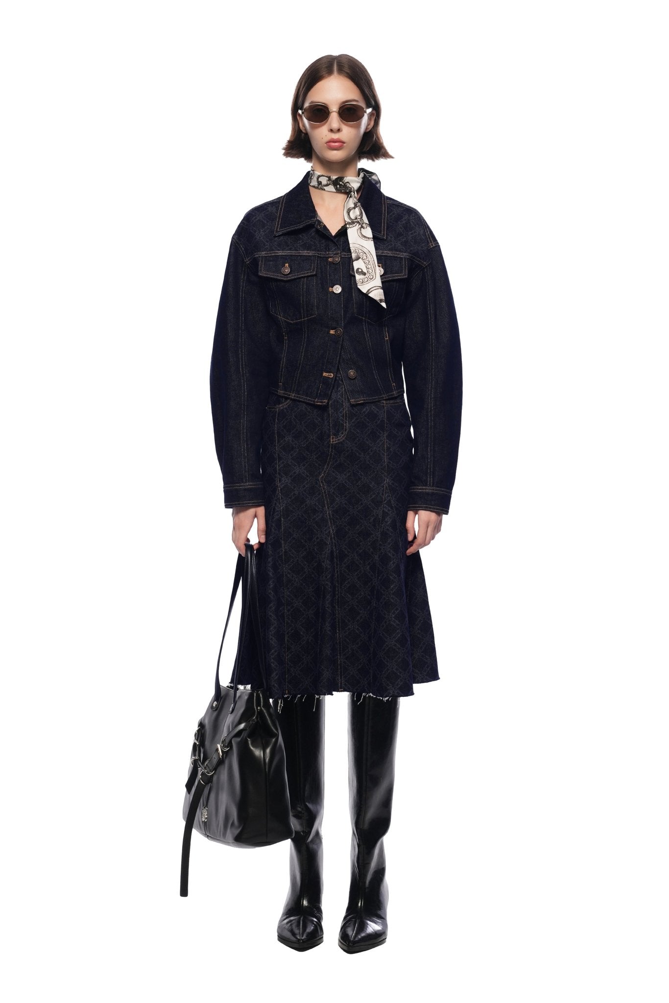 Dark Blue Laser-cut Denim Fishtail Skirt