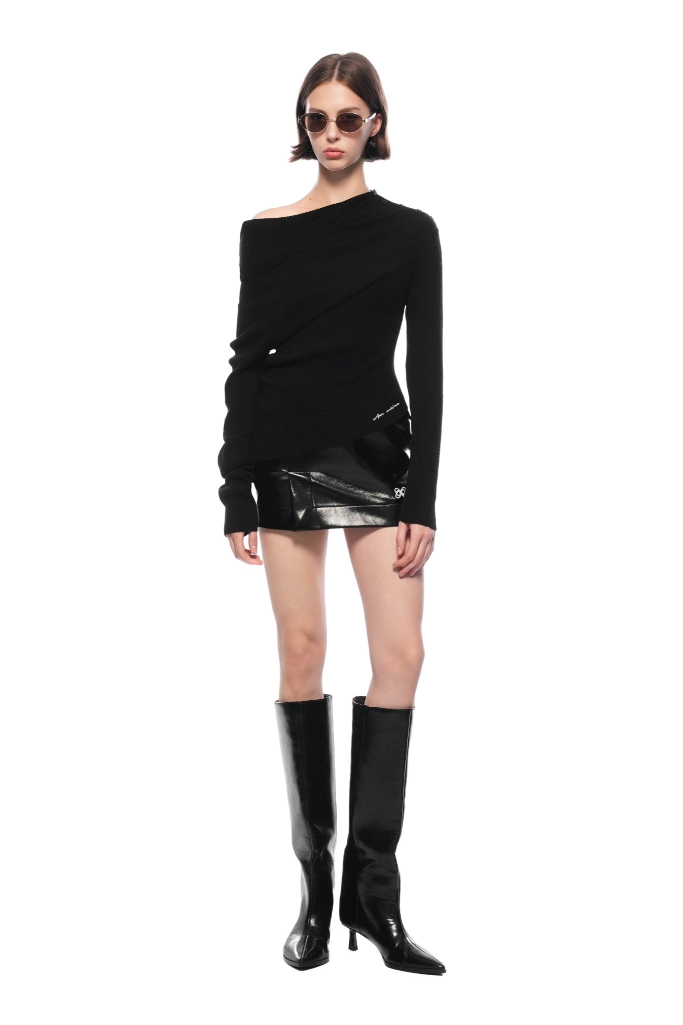 Black Round-neck Double-collar Slim-fit Base Shirt