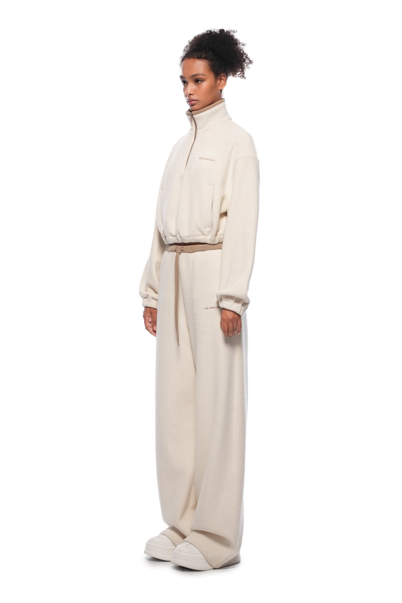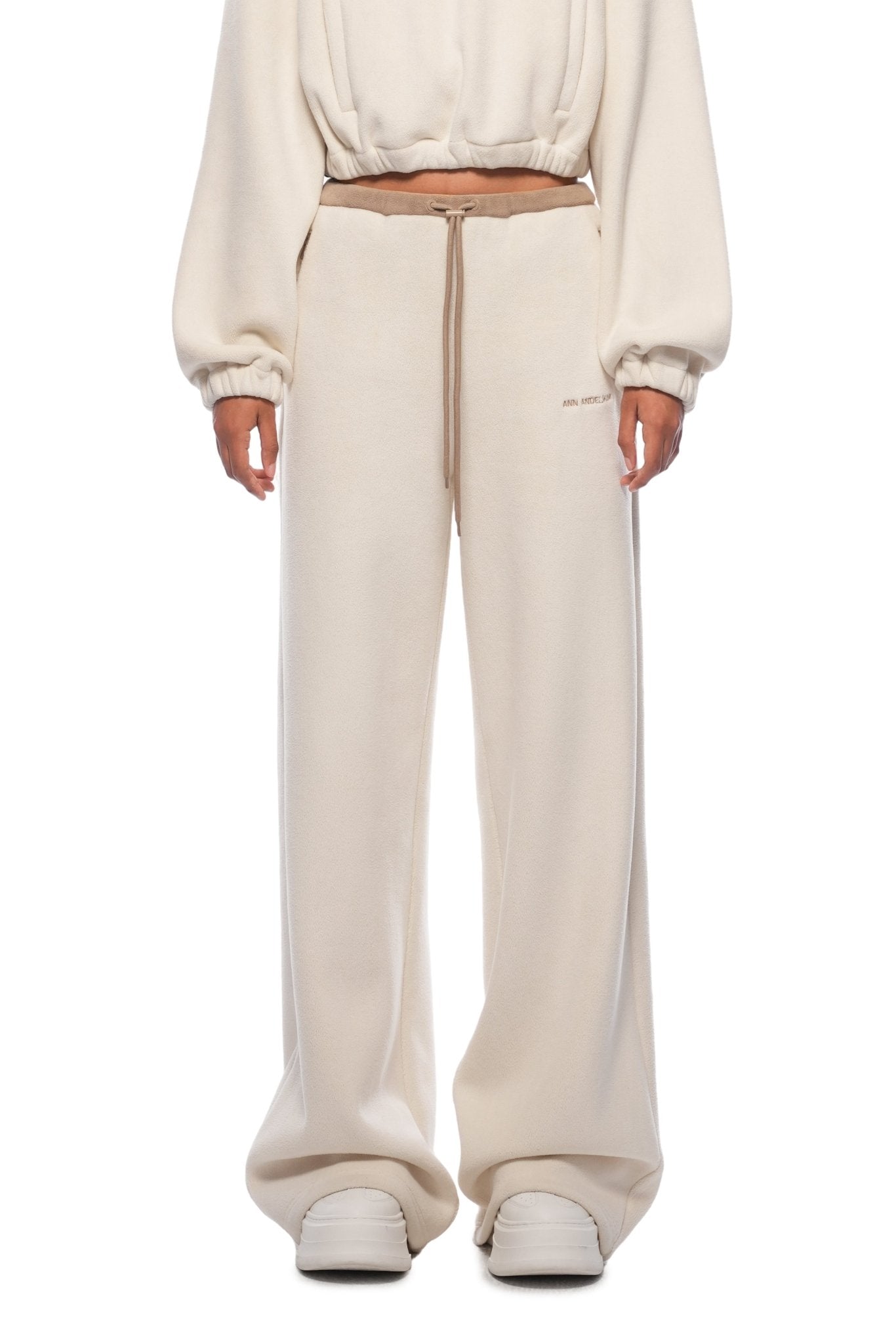 Beige Fleece Wide-leg Pants
