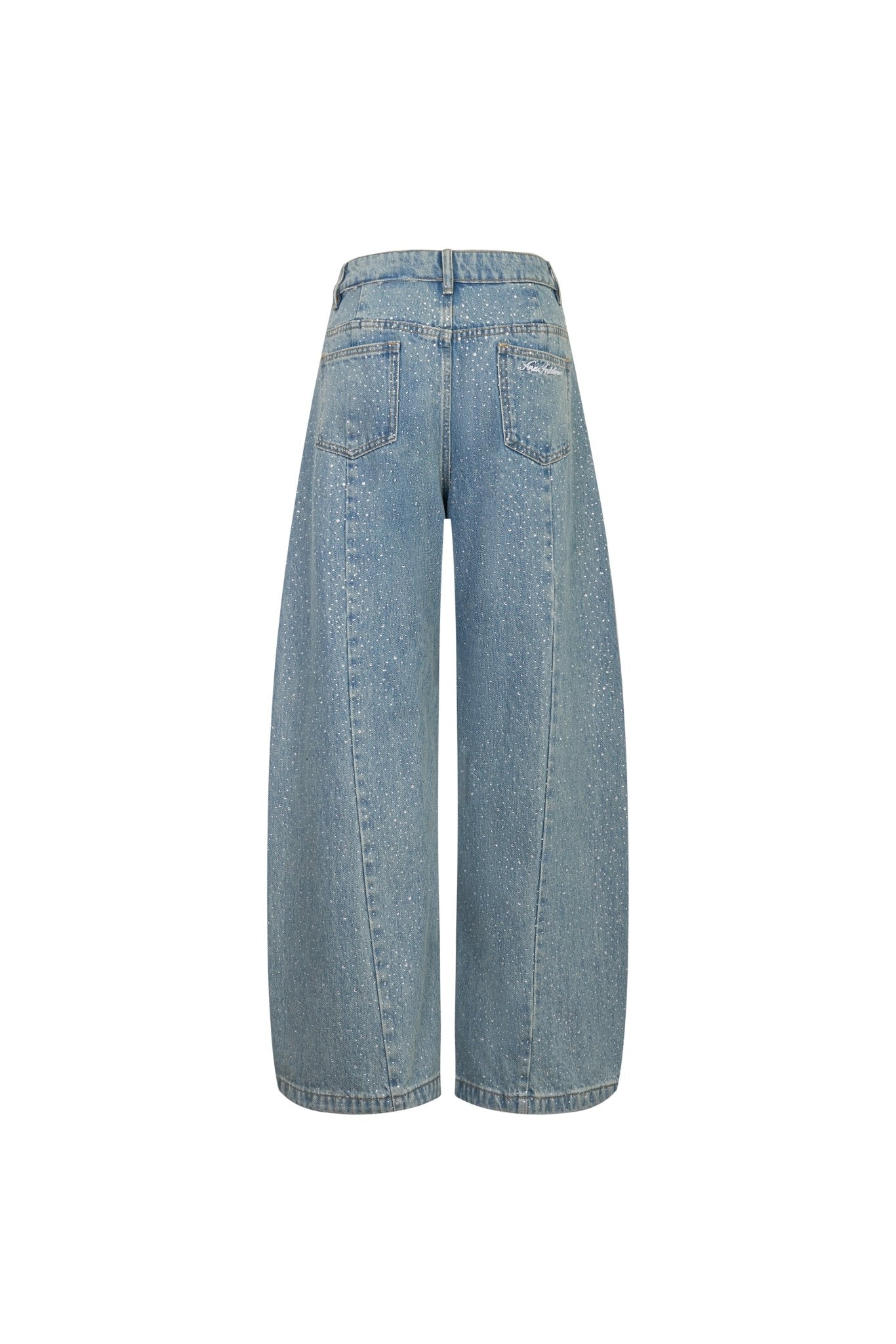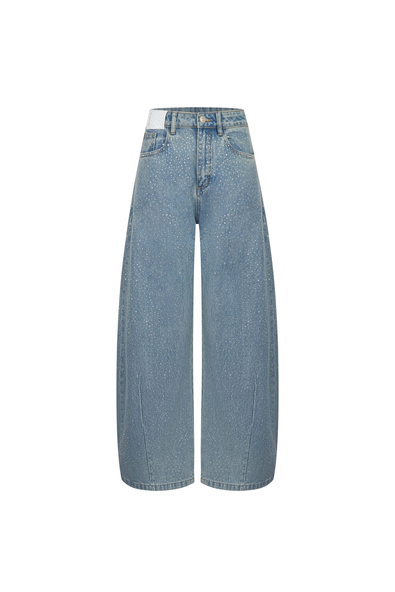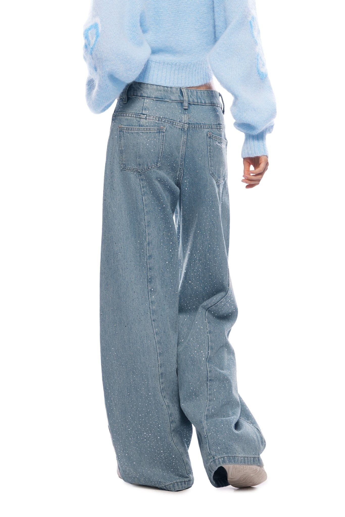 Blue High-waisted Jeans With Sparkling Rhinestones