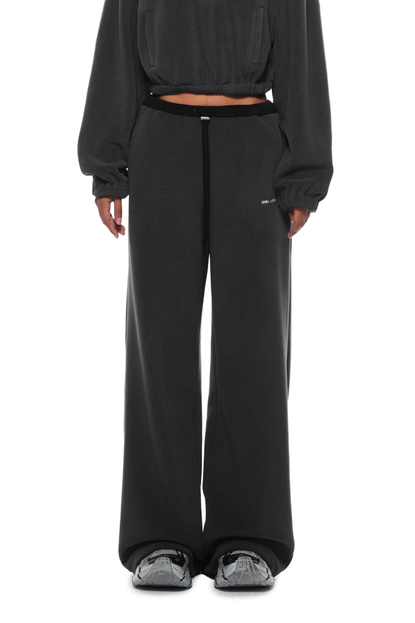 Dark Gray Fleece Wide-leg Pants