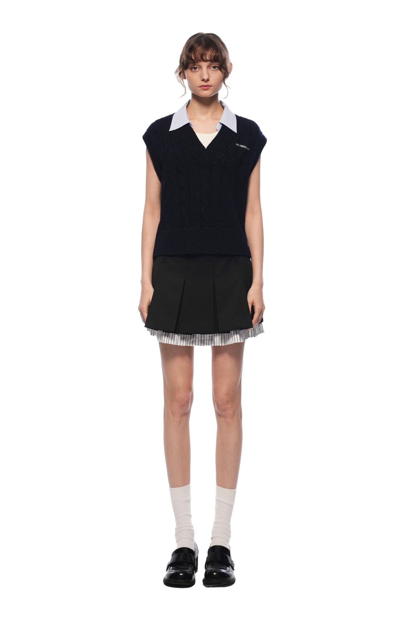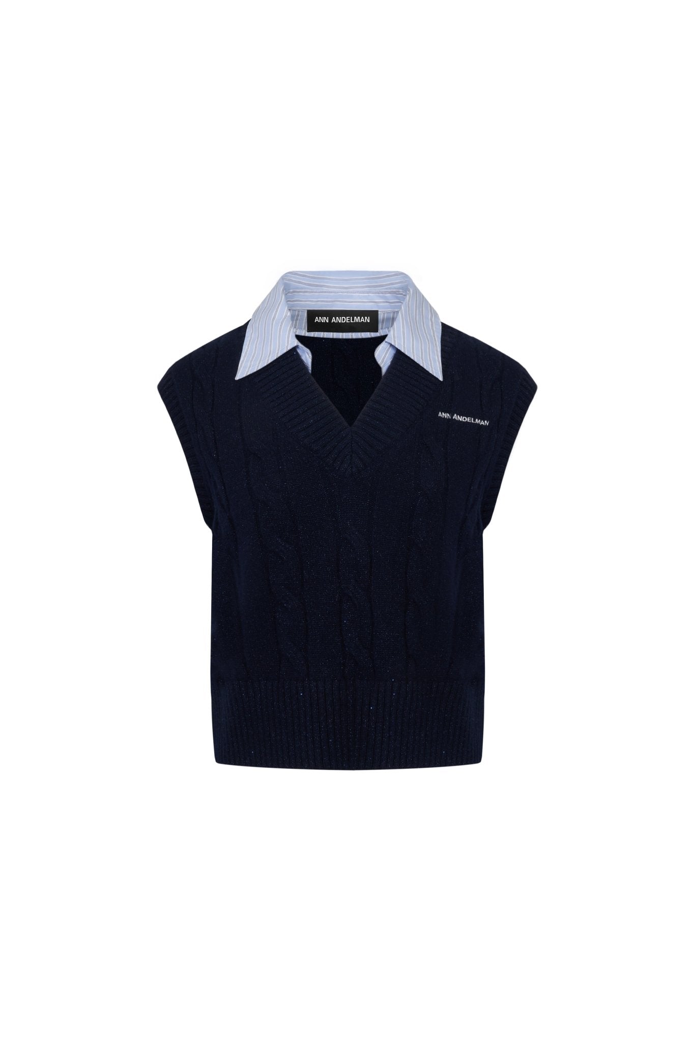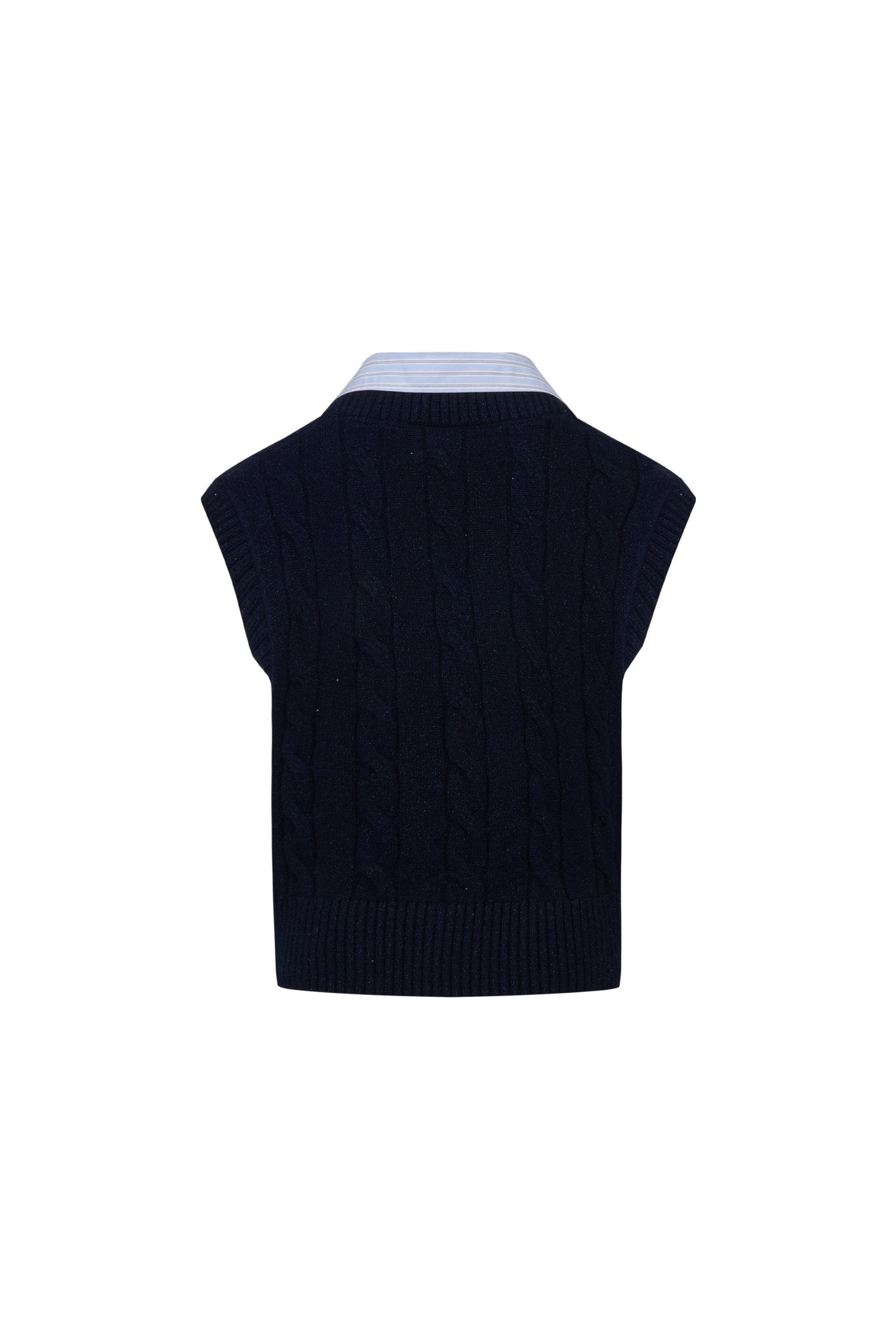 Navy Blue Twisted Patchwork Collar Sleeveless Sweater
