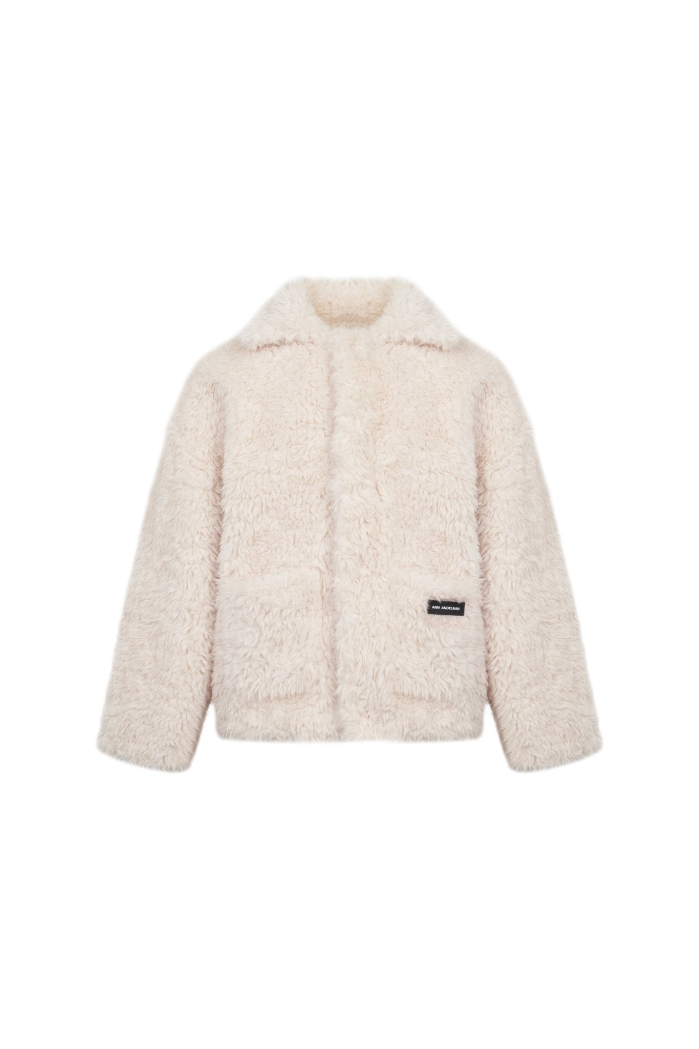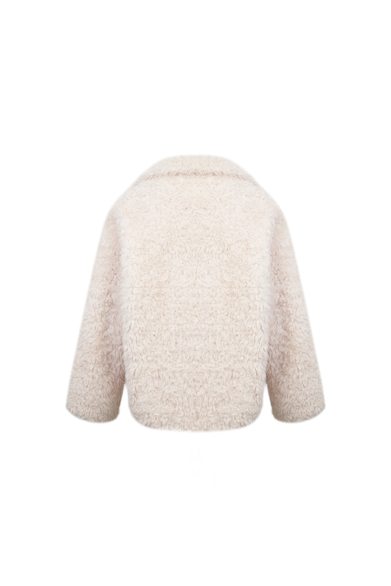 ダークロイヤルブルーのフェイクツーピースウール長袖カーディガン