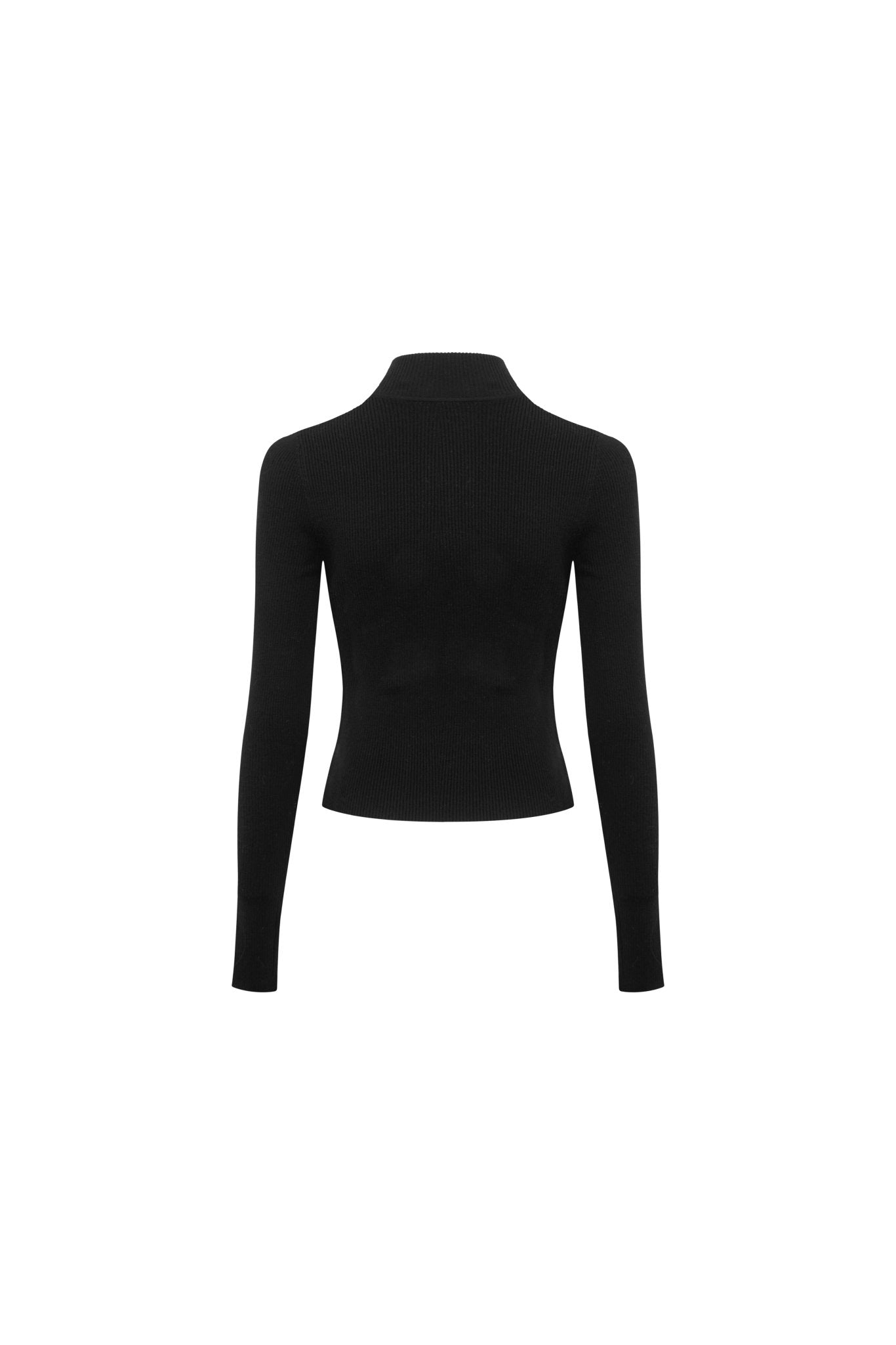 ハーフジップデザインのブラックタートルネックベースレイヤートップ