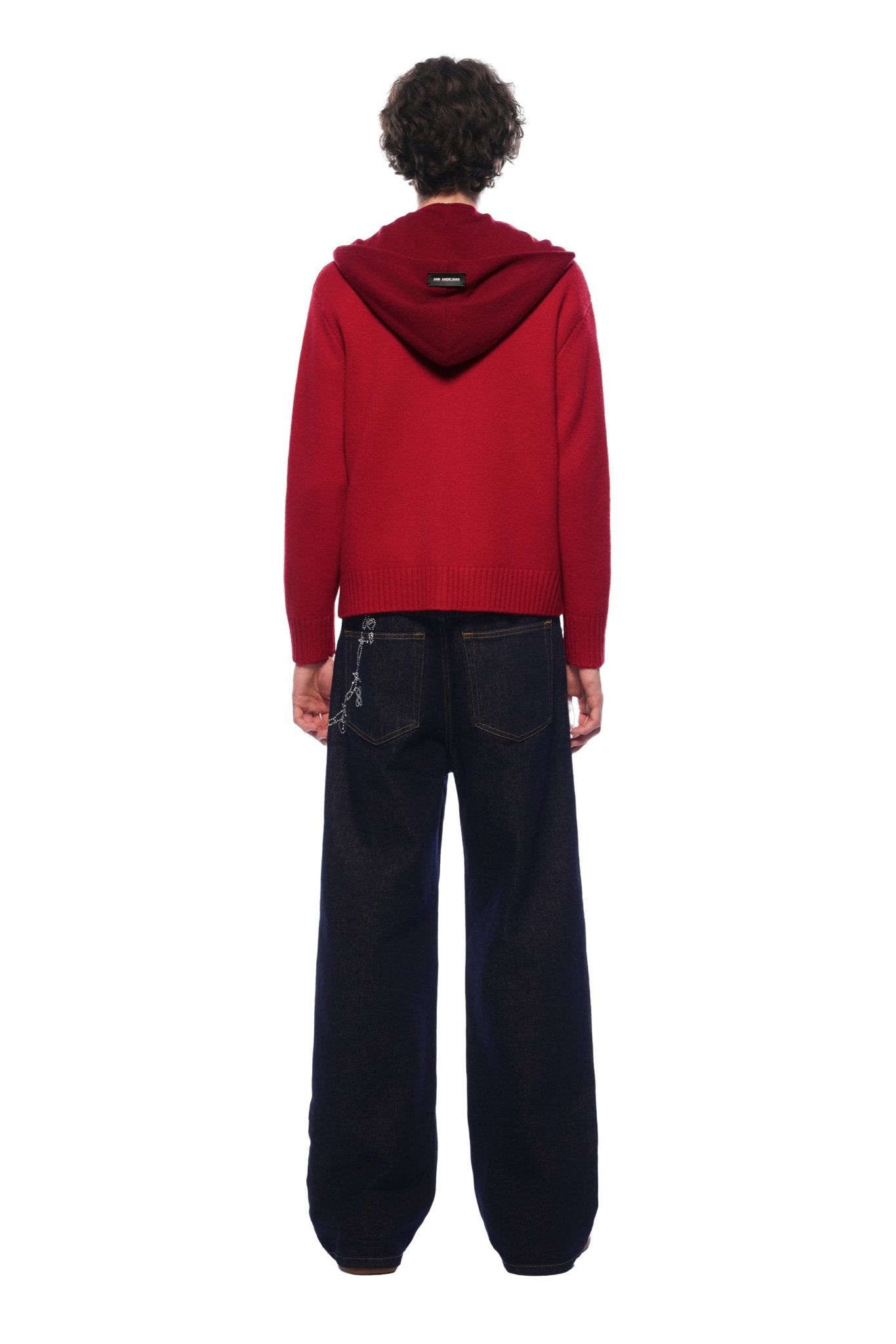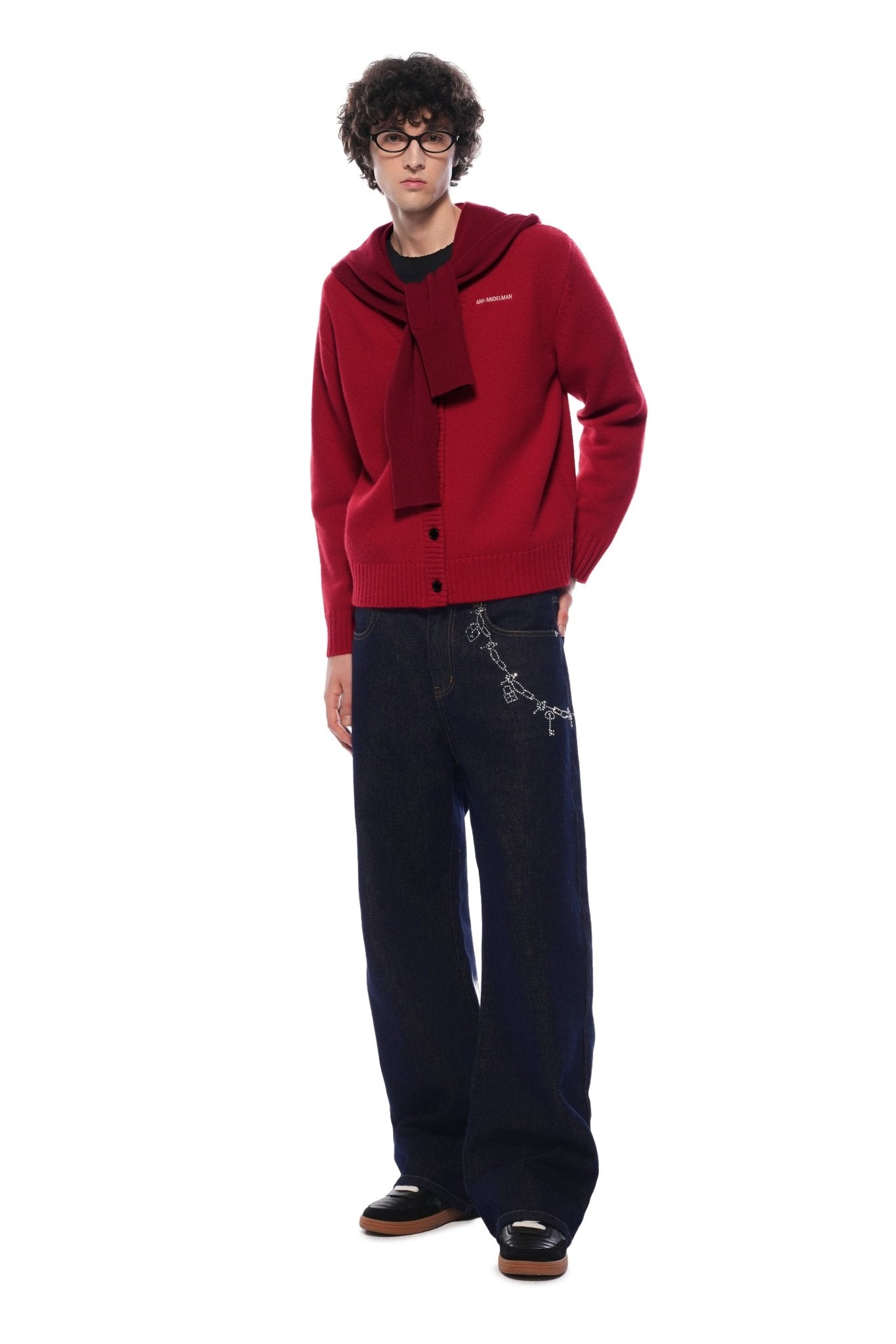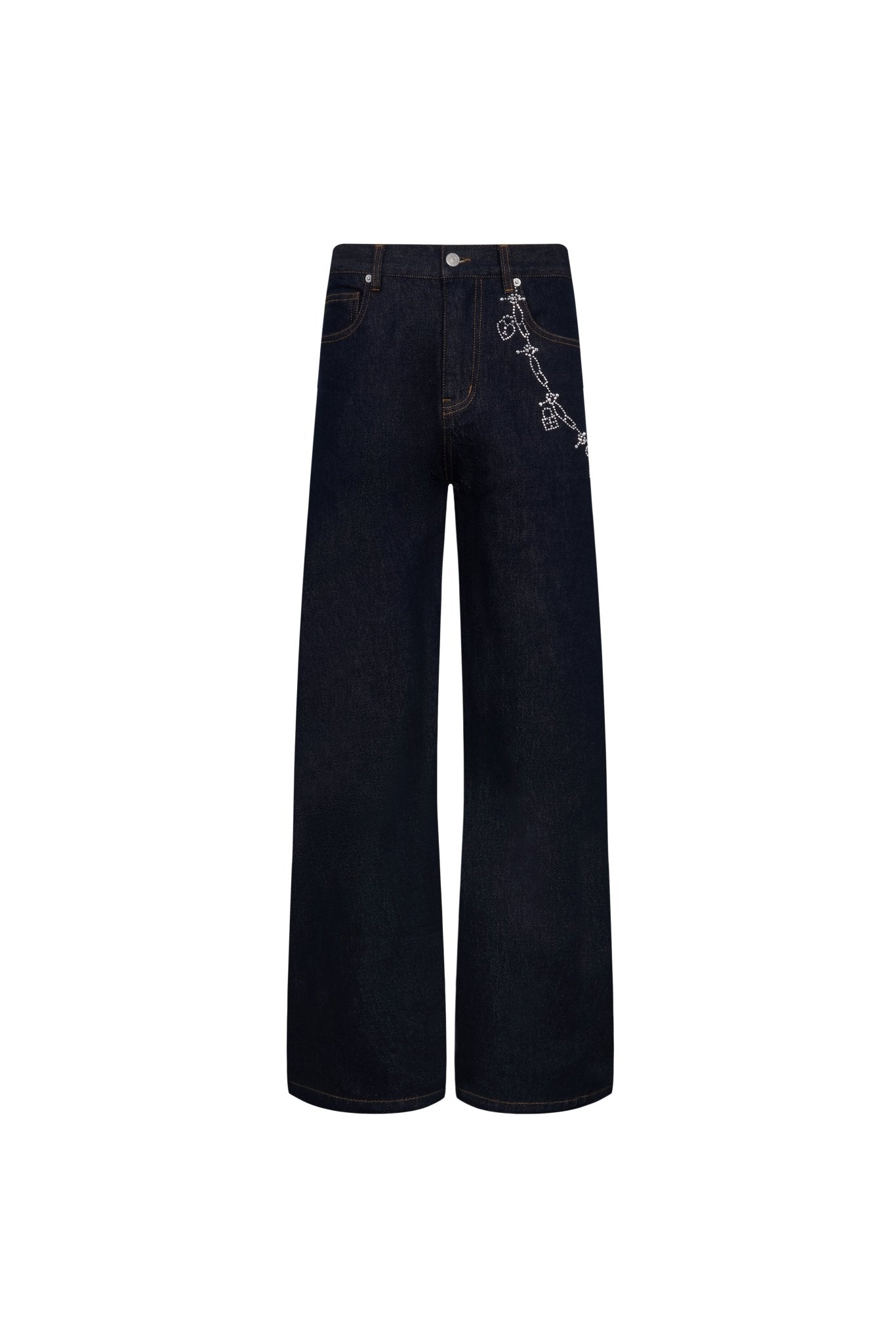 ブルーチェーンラインストーンストレートレッグワイドレッグジーンズ