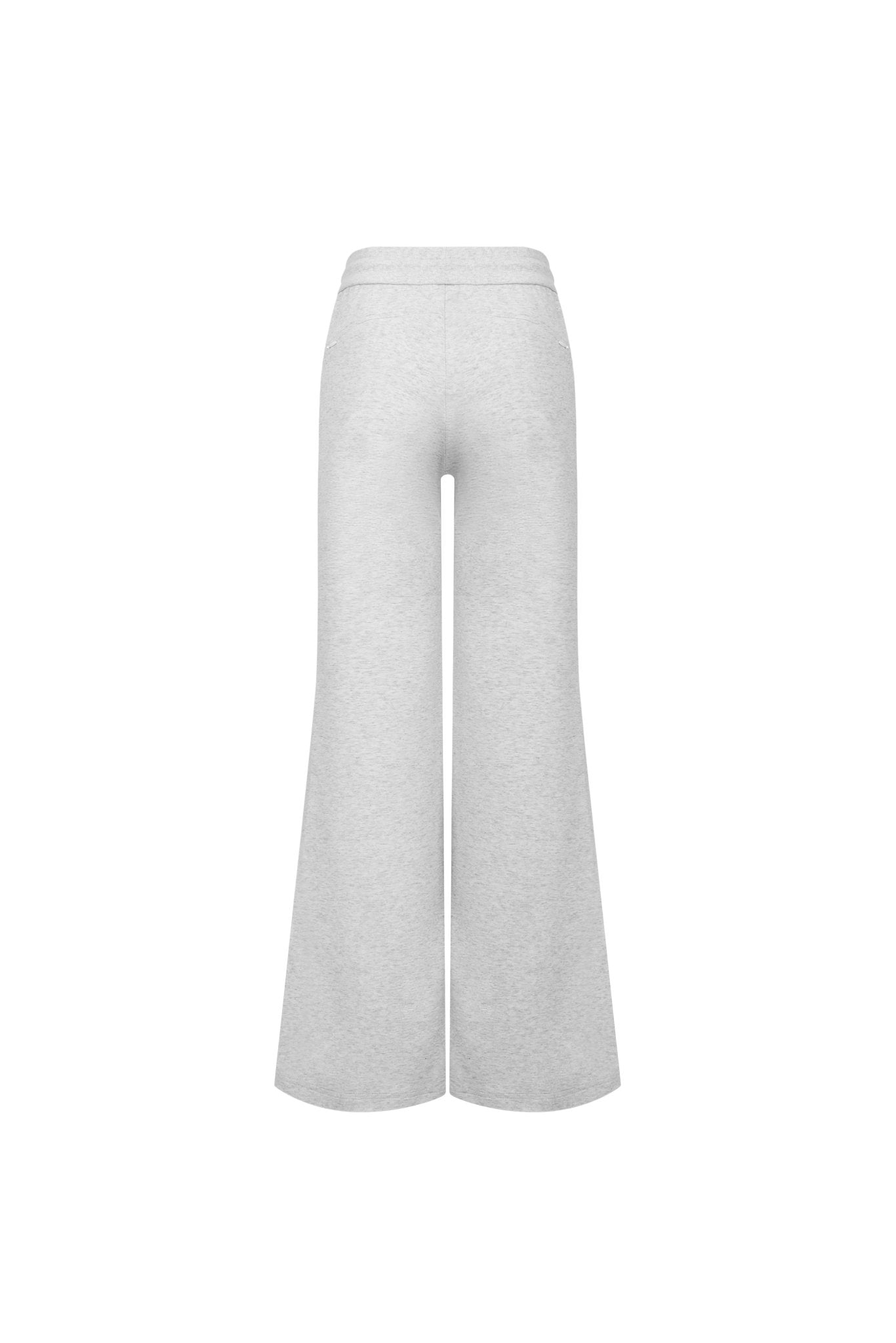 グレーの伸縮性ウエストドローストリングフレアカジュアルパンツ
