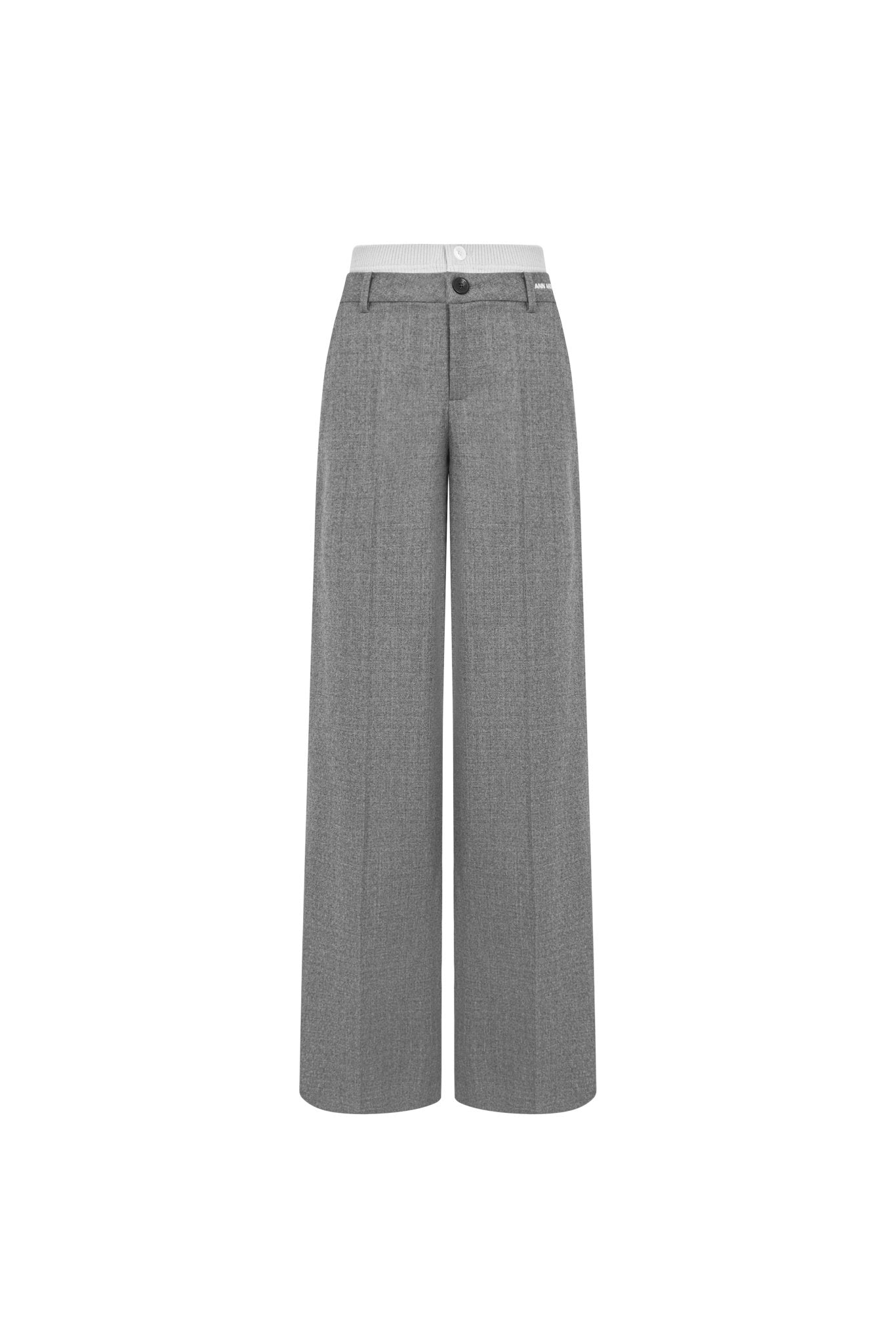 グレーのストレートレッグウールトリムフェイクツーピースパンツ