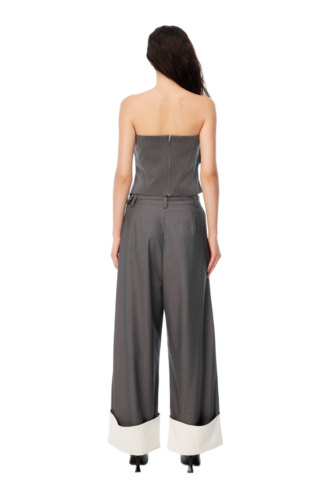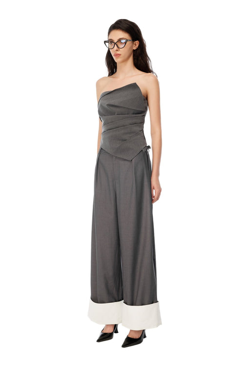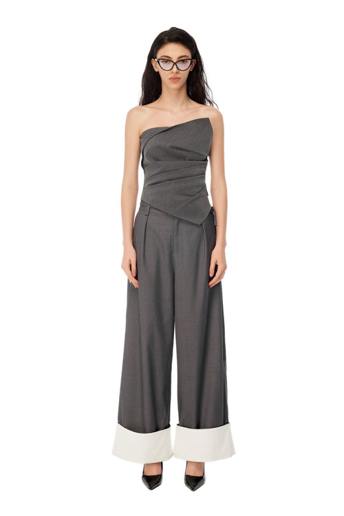 Grey Misaligned Straight-leg Tailored Suit Pants