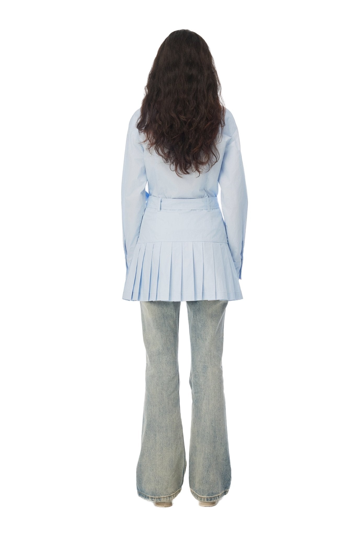 Dark Royal Blue Fake Two-piece Wool Long-sleeved Cardigan