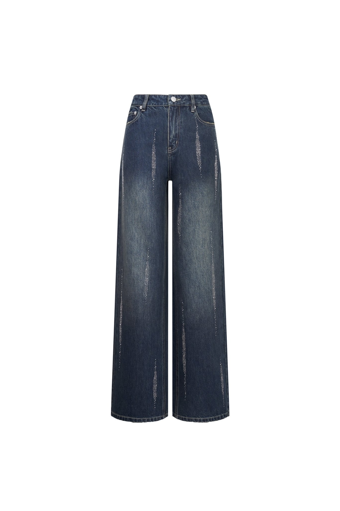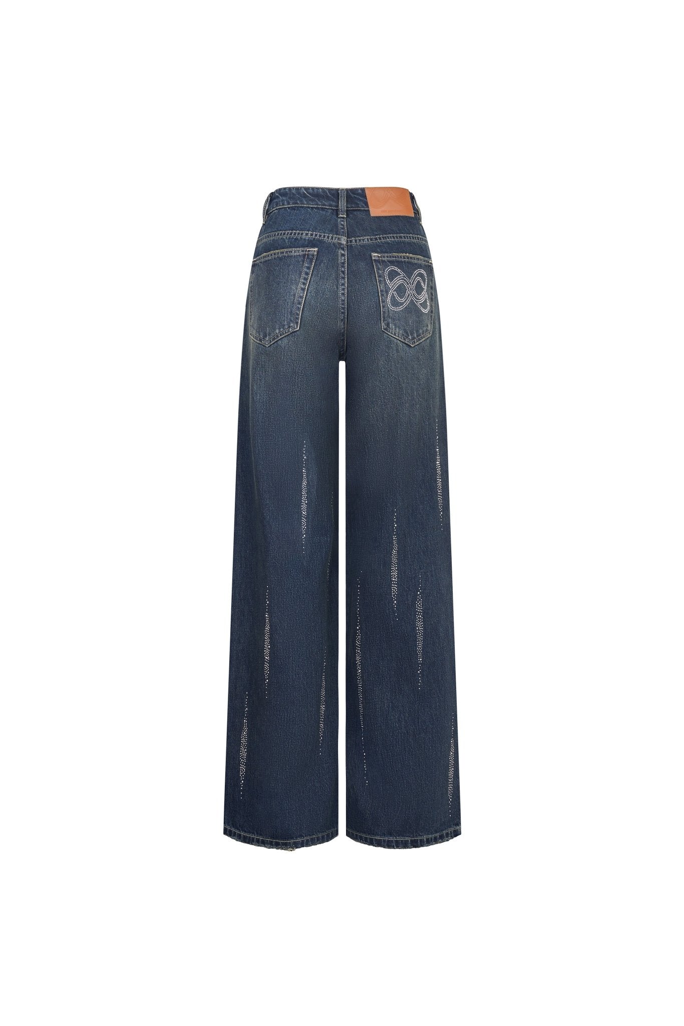 Dark Blue Rhinestone High-waisted Retro Jeans