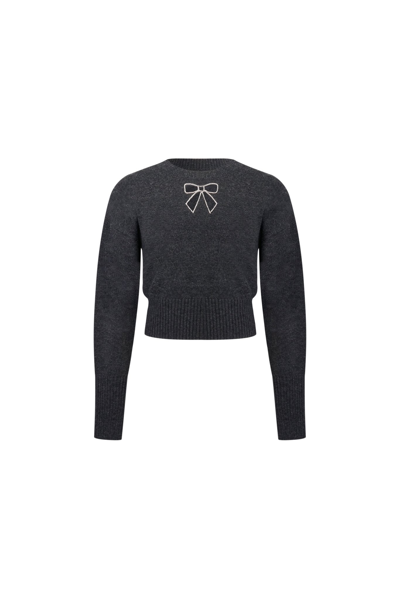 Gray Openwork Bow Rhinestone Chain Sweater