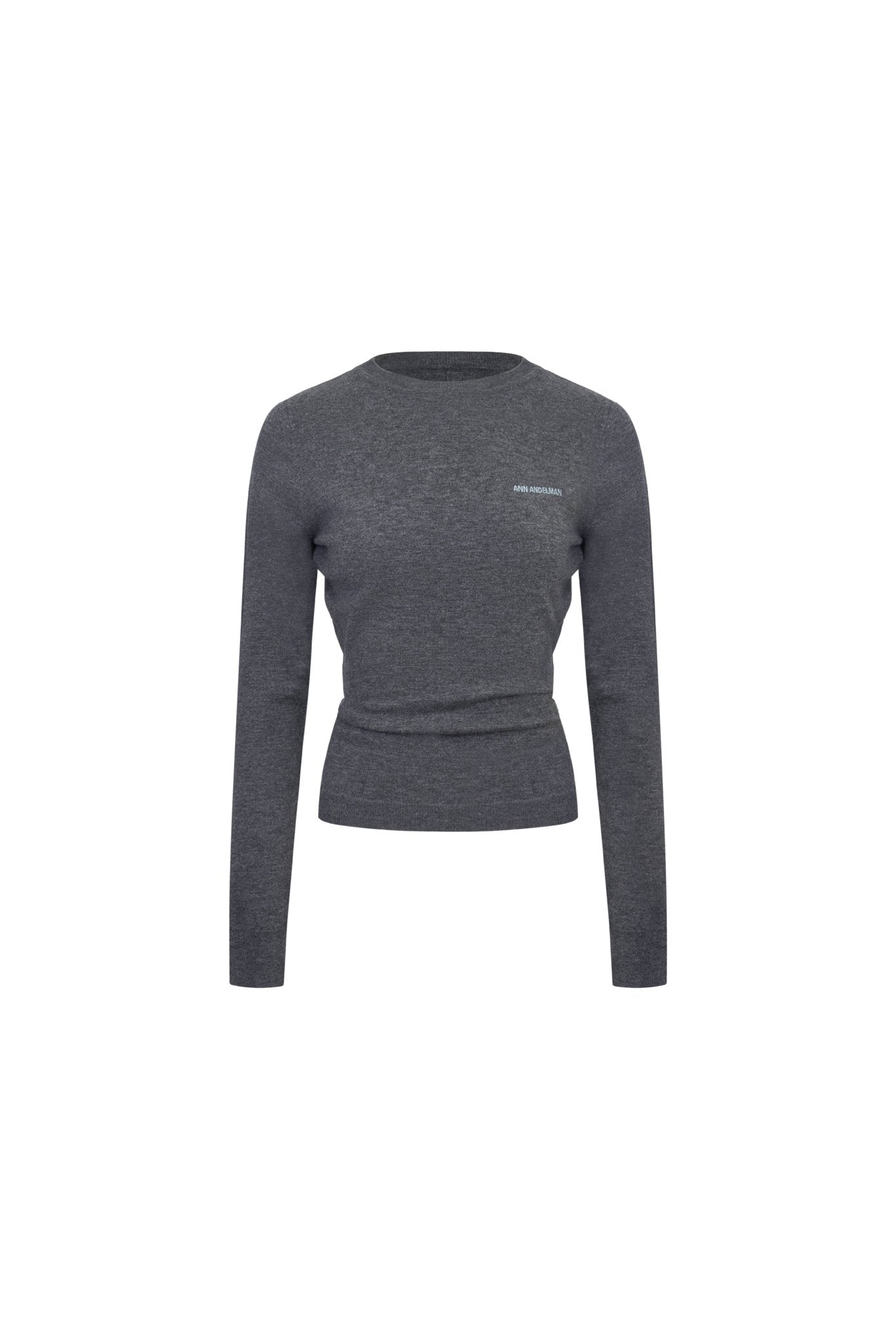 Grey Woolen Slim-fit Long-sleeved T-shirt