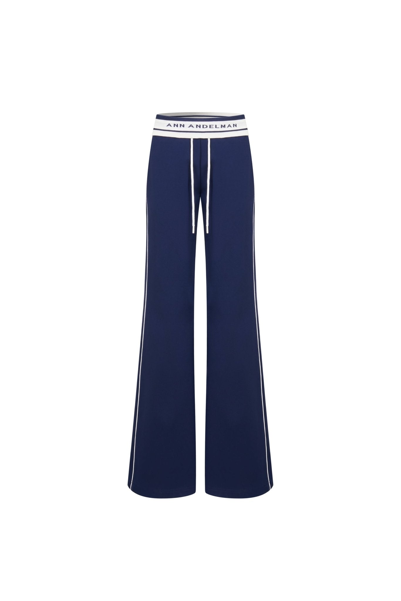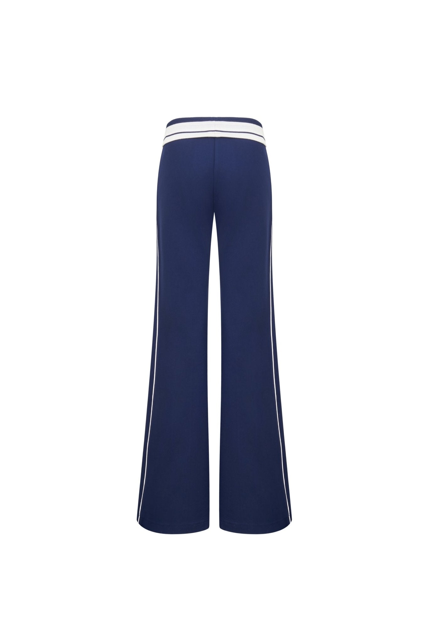 Navy Blue High-waisted Ribbed Flared Sweatpants
